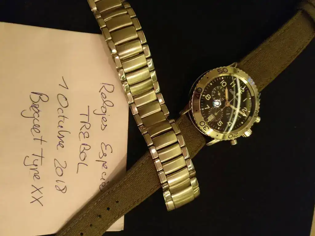 Reloj comprado en compraventa profesional, ha pasado los controles de la policía de control de relojes robados y se entrega revisado y con la hermeticidad hecha, no tiene caja ni papeles. Se entrega con su army's original Breguet en perfecto estado.