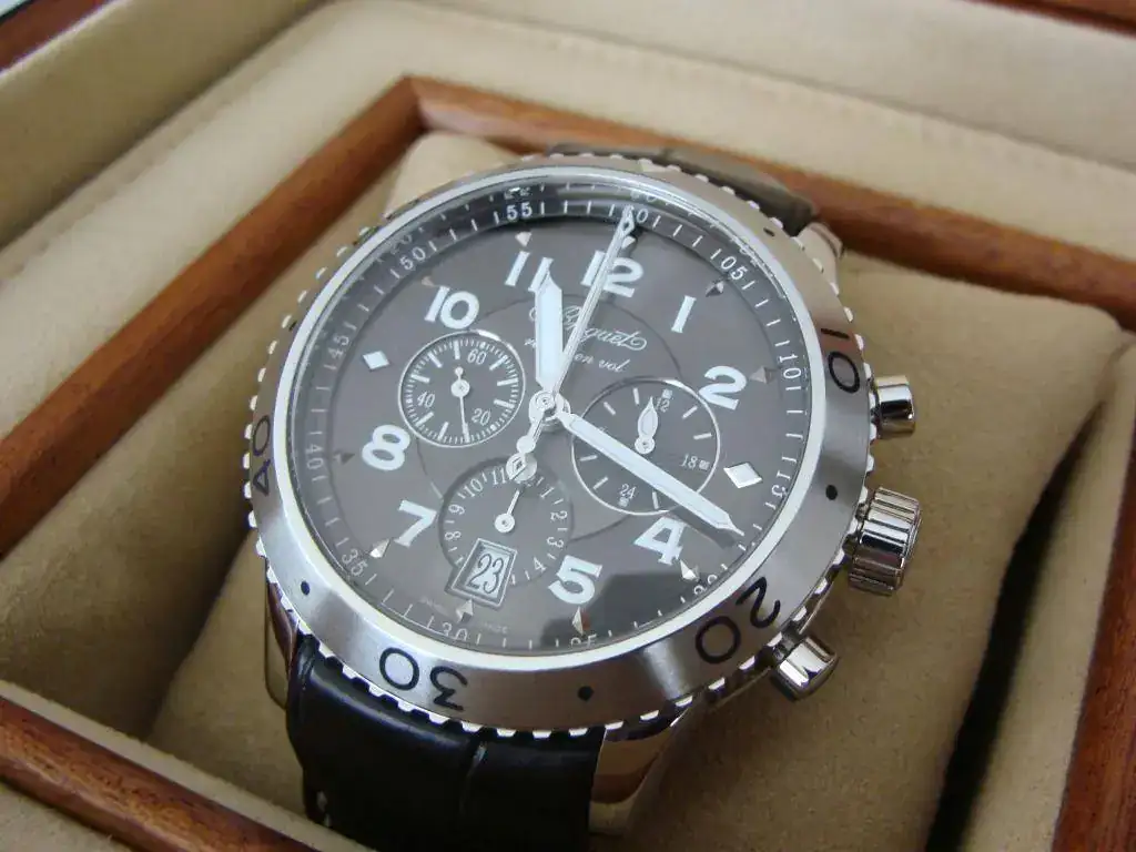 Sigo la “limpieza” y saco a la venta mi BREGUET TYPE XXI, de acero. Casi podria decir que el reloj es nuevo pues no tiene cualquier señal de uso. Pero no. Ha sido muy pocas veces usado, pero a las fotos me remito. Hago, como siempre macros, y muchas fotos, para que vosotros puedan mirar su estado. La caja, correa, cierre, todo perfecto.