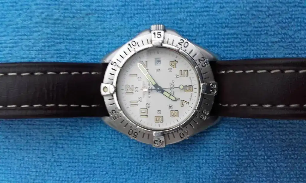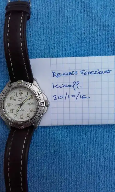Se trata de un Breitling A 57035, es un colt quartz, que funciona a las mil maravillas, y que esteticamente esta fenomeno.(a las cutre-fotos me remito, aunque si estais interesados os puedo enviar mas, solo hace falta pedirlas)