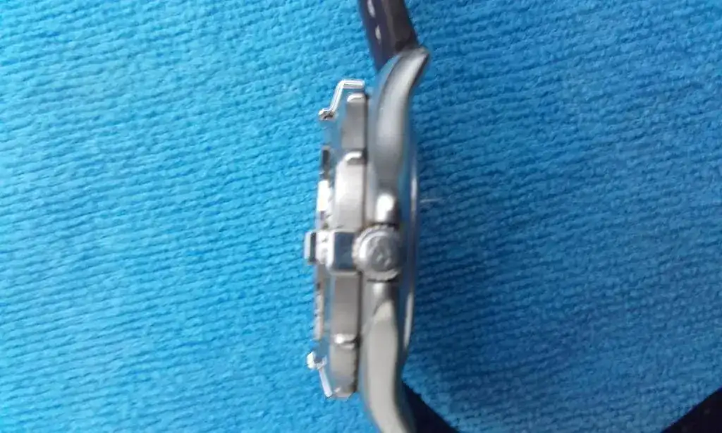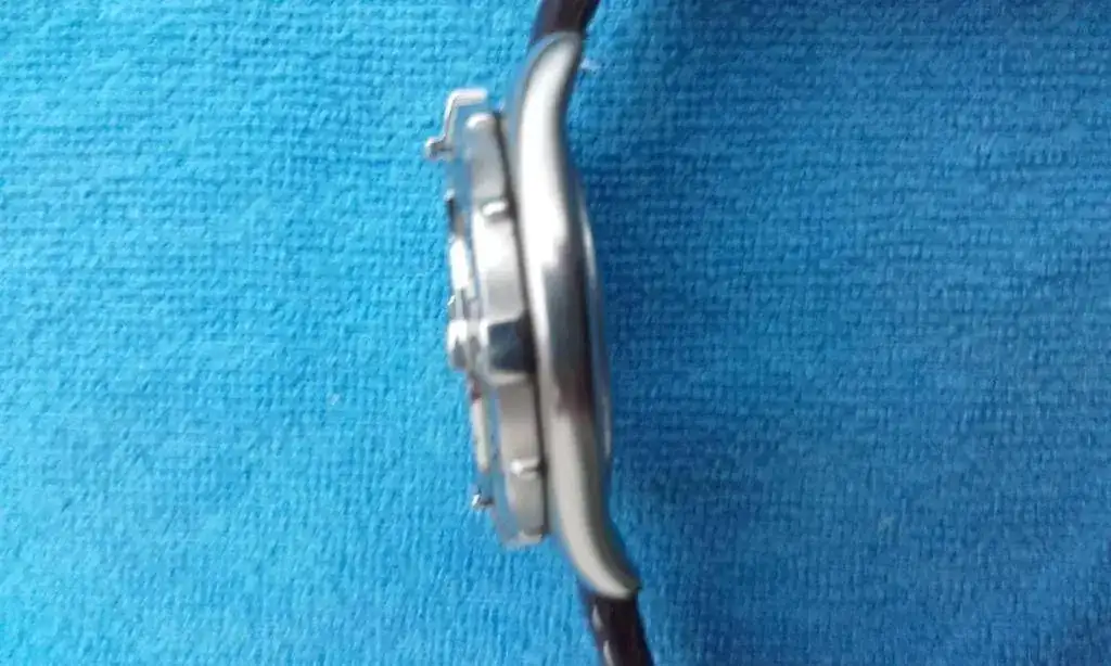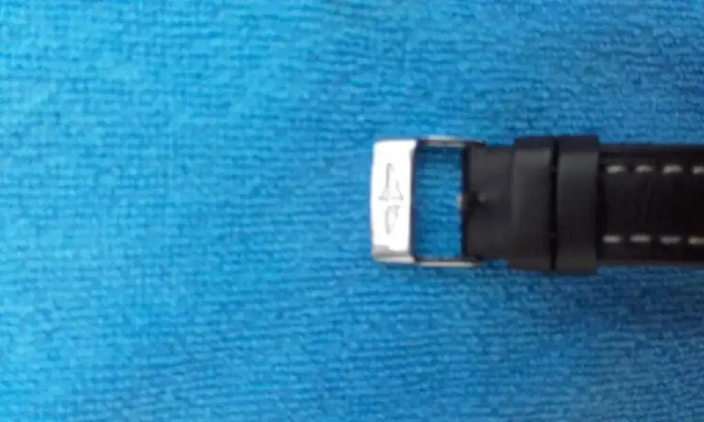El reloj lleva una correa de piel marron, no es la original, pero tiene puesta una hebilla original.