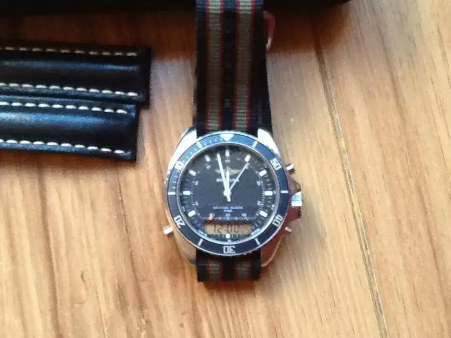 Saco a la venta esta joya casi de colección, del año 92, su caja de 41.5mm, este modelo se convirtió en un icono en el año 91 por salir en primer plano en la película " Le llaman Bodhi" de Patrick Swayze. Es una pieza difícil de encontrar y menos en este estado, impecable, como si fuera nuevo, excepto el cristal mineral con marquitas, es lo que tiene.... No se notan mucho, por lo demás esta excepcional, funciona hasta la iluminación de la pantalla digital.
