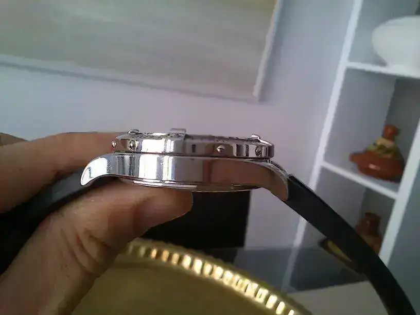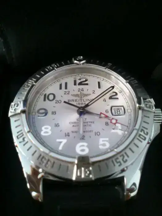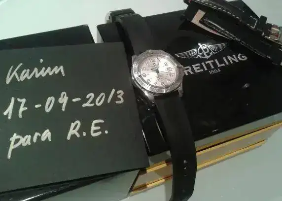 ... el cristal está impoluto y antireflejo sin un sólo pelo. Esfera blanca texturada en circulos concéntricos, no hay otro parecido en el foro. Lleva su caja de cartón, la de baquelita, y la de viaje. Toda la documentación, certificación y garantía selleda por concesionario nacional (caducada evidentemente). Le tengo puesto caucho, la ProdiverII con toda la vida por delante, y además añado una de piel original Breitling y una Hirsch de piel negra con grabado coco. El orden de marcha es COSC.