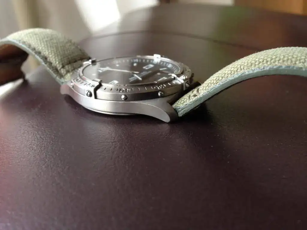 Lleva montada una canvas verde que creo que le queda bien (usada, aunque con vida por delante). En todo caso, venía con una de caucho original de la marca, que tiene poco uso.