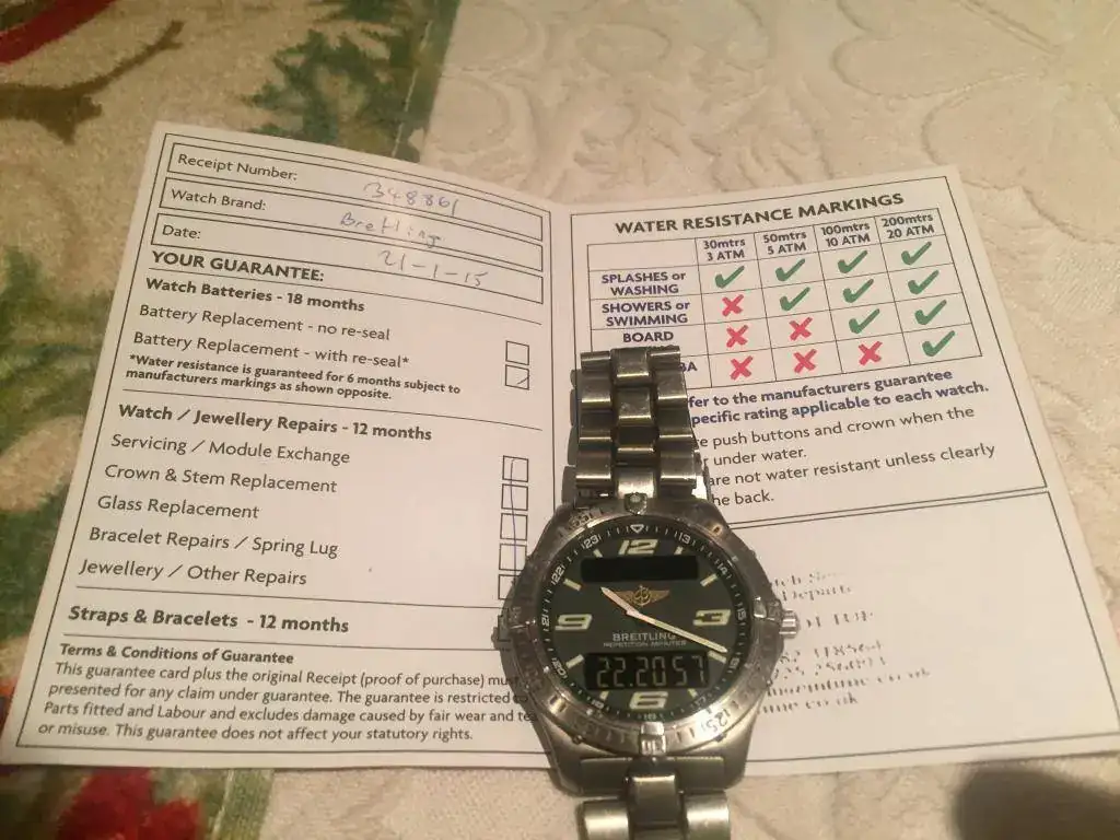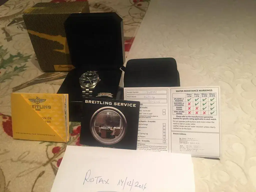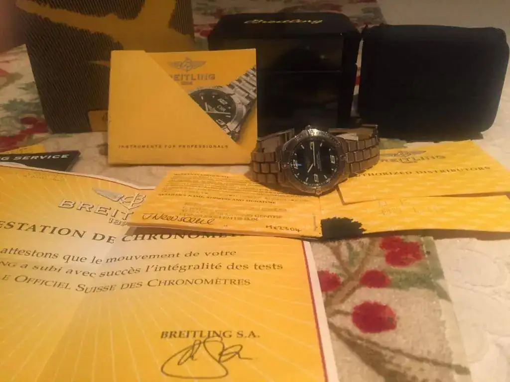 Estuche de transporte Breitling y toda su documentación incluyendo certificado Cosc y tarjeta de última revisión.