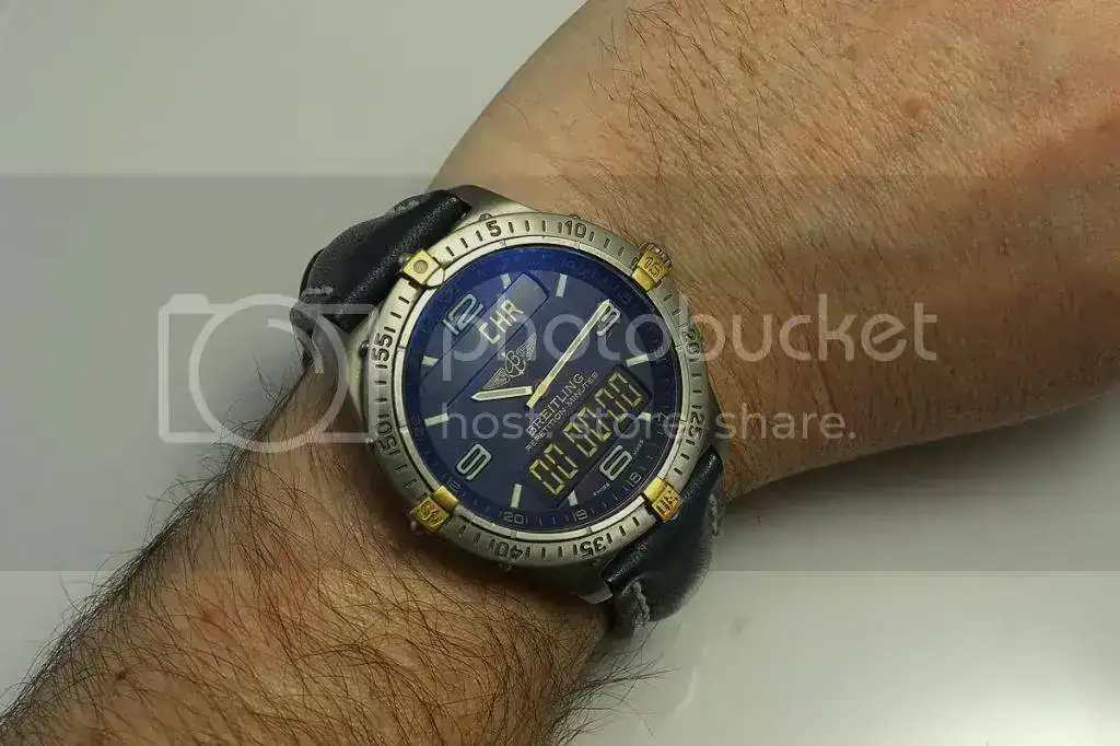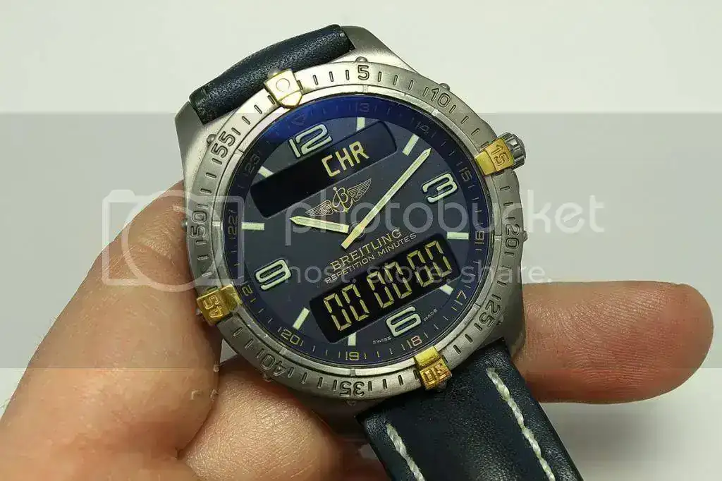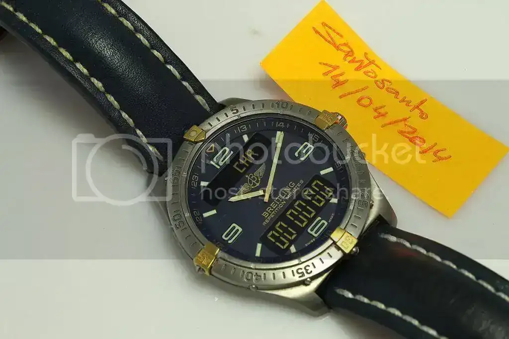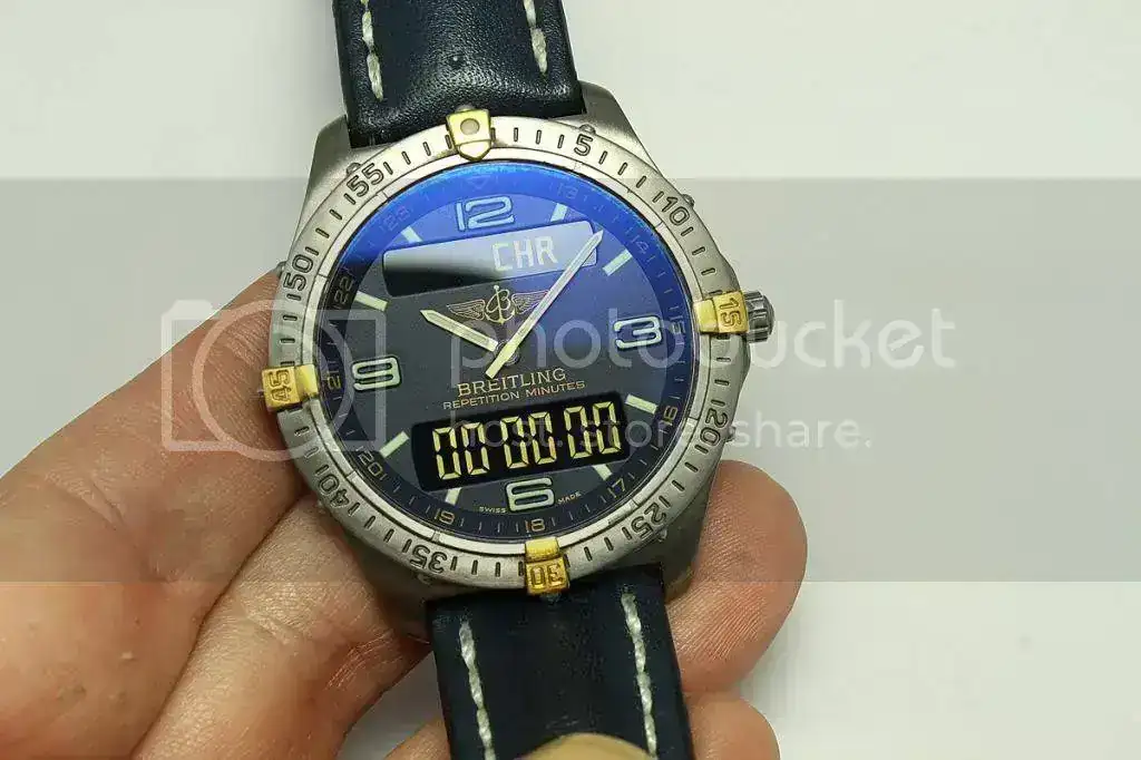 Tras pedir permiso al Administrador y serme concedido, pongo en venta uno de mis preferidos, básicamente porqué ha entrado su hermano mayor, este Breitling Aerospace F65062 Titanium. Tiene unos años a sus espaldas pero siempre ha pasado sus revisiones en el SAT de Breitling en Barcelona, Cronowatch. No poseo las facturas, pero es fácil de comprobar. Simplemente con la numeración te podrán decir cual fué, por ejemplo su última revisión. Te avanzo que ahora hará, si no recuerdo mal, sobre los dos años y pico. Todo esto te lo cuento porqué, por si no lo sabes, en las revisiones, aparte de cambio de pila, cambian juntas, corona, comprueban parámetros y hermeticidad (100m water resistant).