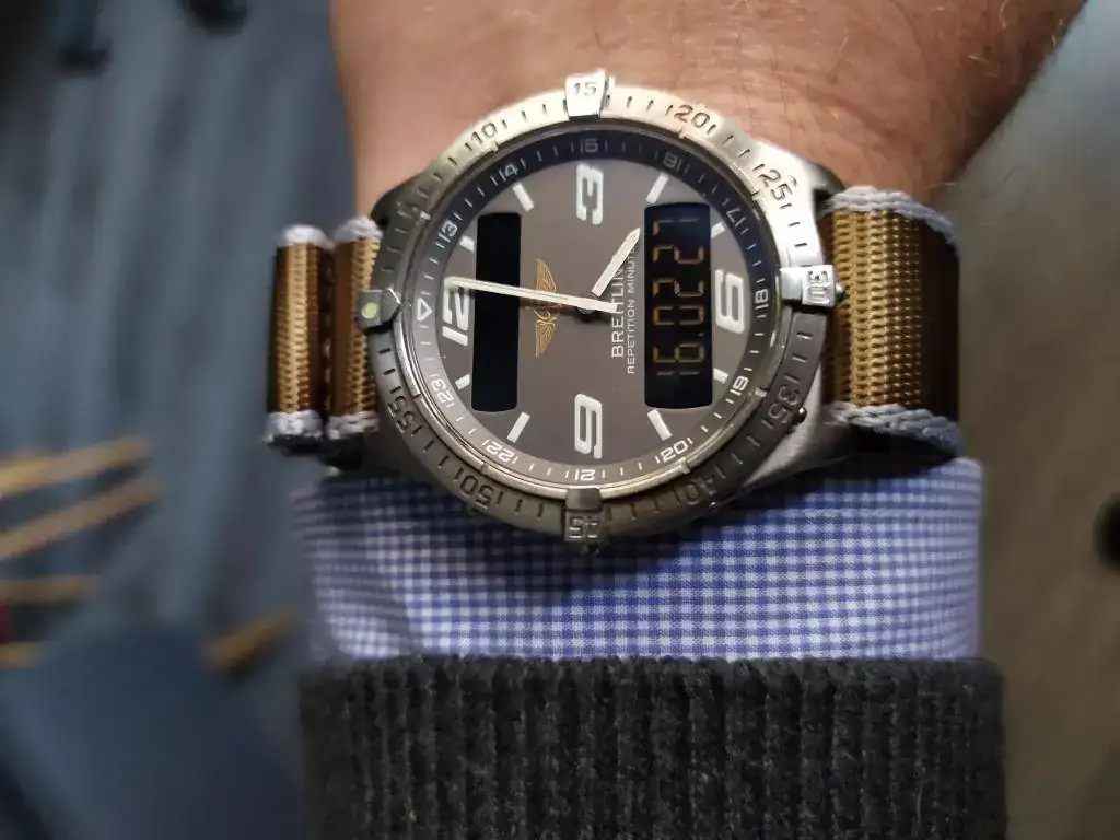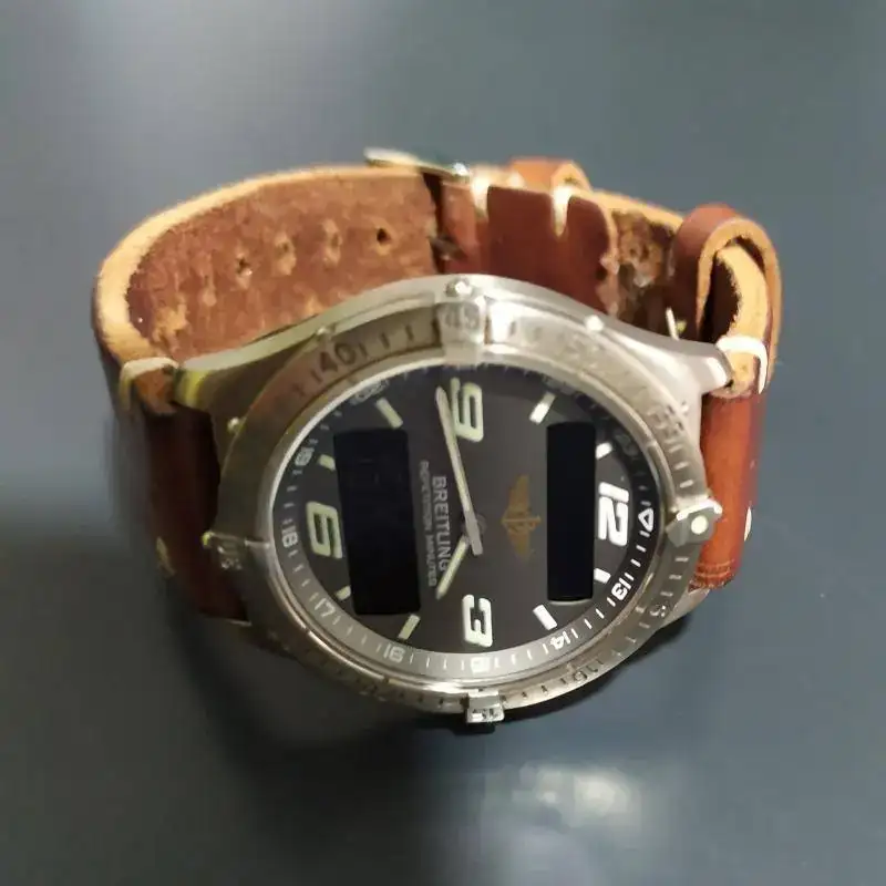 entrego el reloj con la caja de cortesia Breitling, manuales y la Nato de la primera foto y una correa artesanal con hebilla original Breitling.