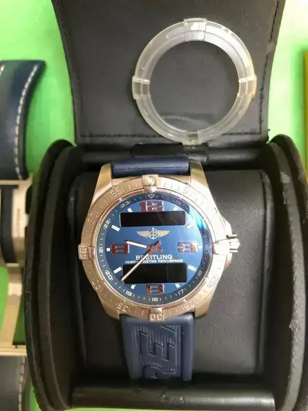Vendo Breitling Aerospace E79362. El reloj se encuentra en muy buen estado. Alguna pequeña marca en la caja, y el cristal impoluto. Mírate con detenimiento las fotos y allí verás el buen estado en que se encuentra el susodicho.. La última revisión que se le hizo fué en Marzo del 2019, hecha en el mismo CO donde lo compre, se hizo cambio de pila y Hermetismo( adjunto factura). Y entrego factura de anteriores revsiones, para que veais lo buen que se ha cuidado esta pieza.