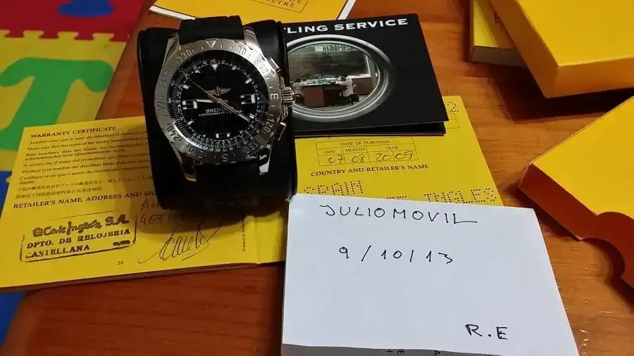 Se vende este estupendo BREITLING AIRWOLF de los pocos con la esfera del raven (que se ve mucho mejor que la del normal).el estado del reloj es estupendo de un 99 de 100.la caja del reloj al 99.9 la correa como se puede ver es la nueva de breitling podriver 3 que es muy poco vista el cierre deployante tiene las tipicas rallitas del uso nada que no se pueda quitar con un pequeño toque.el reloj fue revisado por breitling y tiene 2 años de garantia por delante.fue una revision completa con cambio de pila y todo lo que se les hace esta con toda la dotación.precio de 2.000€ envio incluido por nacex 24 horas.me pueden interesar algun tipo de cambio y se puede hablar si hay que incluso poner algo de dinero