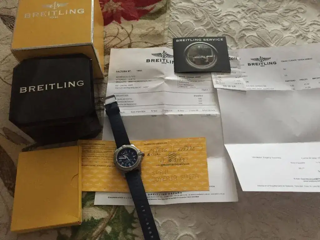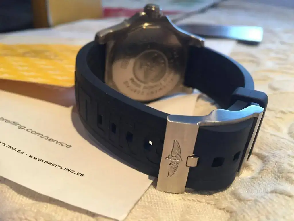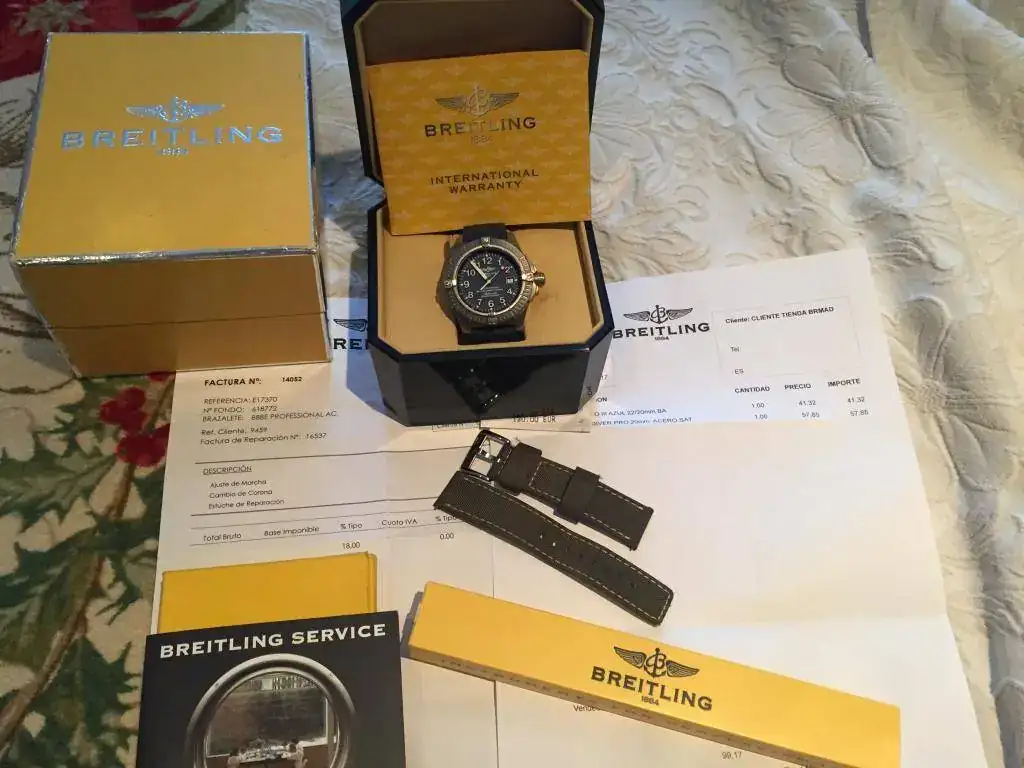 Reseñar lo siguiente:Aporto factura de Revisión en Sat Breitling en 2011,el caucho Diver Pro III comprado en Boutique Breitling Serrano hace 1 més.