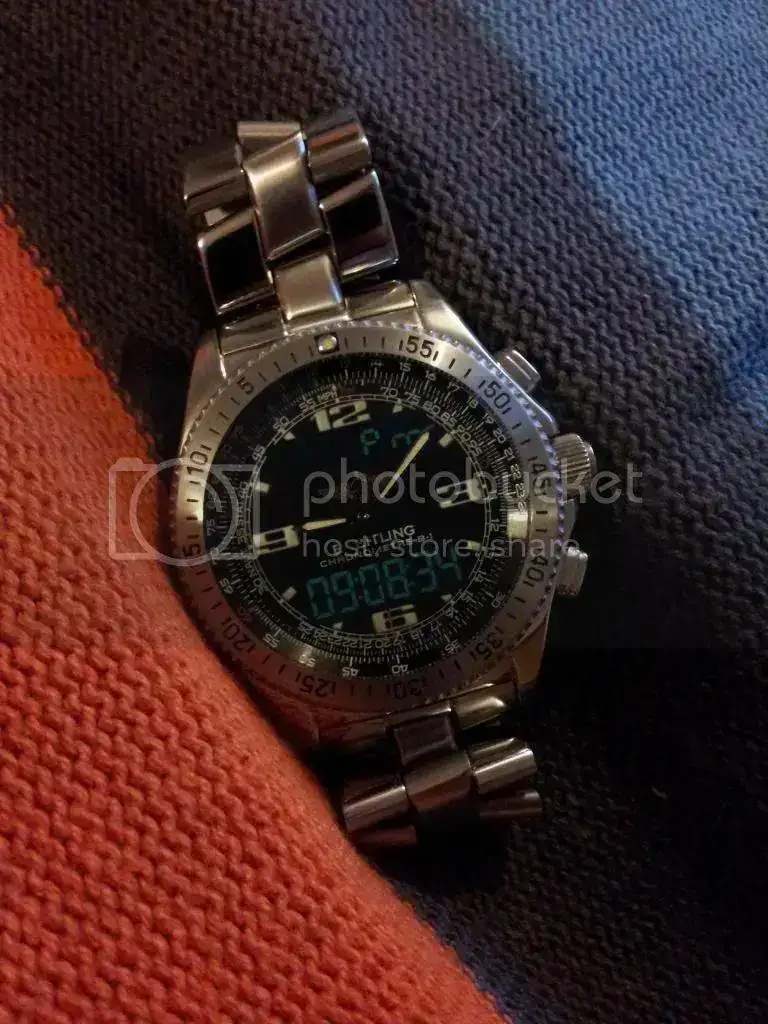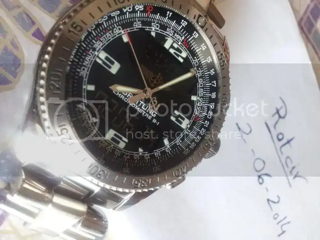 El bisel ha sido cambiado por uno nuevo en el SAT de Breitling. La caja esta como recien salida de la tienda. La pila tiene dos meses. Se vende con todos los eslabones y set completo.