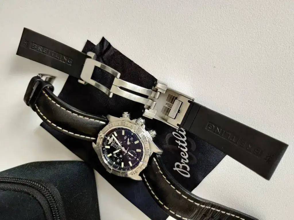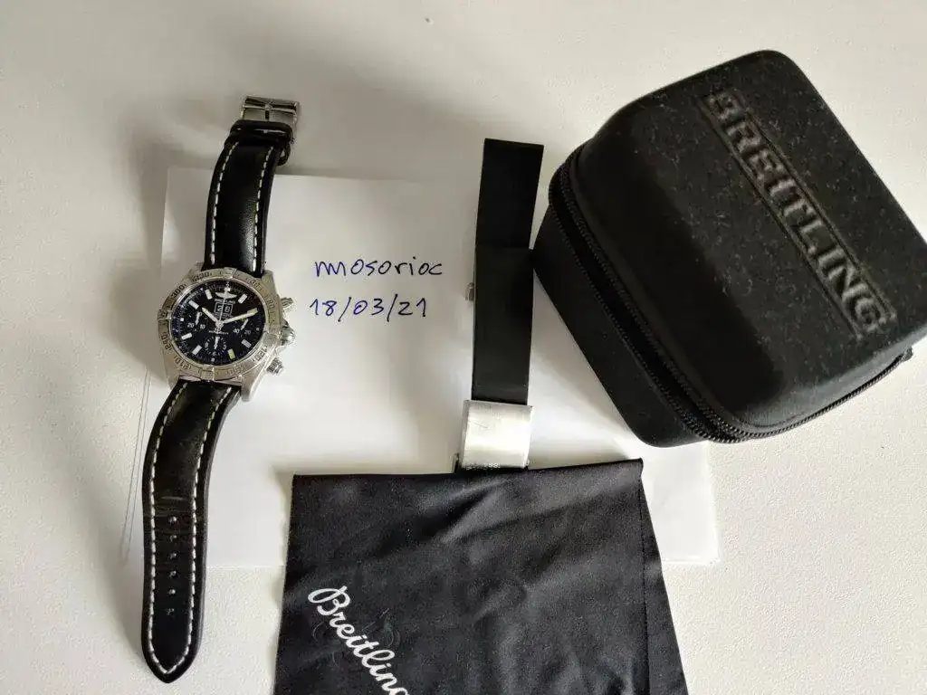 Aunque temo arrepentirme, porque es la segunda vez que me deshago de este modelo, tengo la oportunidad de hacerme con una pieza que llevaba tiempo buscando, pero necesito hacer caja y por ese motivo pongo a la venta este relojazo, en un estado impecable tanto estético como de marcha (perfectamente dentro de parámetros COSC). La correa de piel de búfalo que lo acompaña no está nueva, pero tiene mucha vida por delante. También lo acompaño con una correa de caucho original de Breitling con un cierre con microajuste.