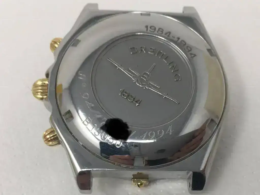 Este reloj es parte de una edición limitada de 1994 para celebrar el décimo aniversario de este modelo de Chronomat,se hicieron 1994 ejemplares,conserva el estuche amarillo original aunque en mal estado y el librito de instrucciones. El reloj está sin pulir,pero se puede entregar pulido a petición del comprador.