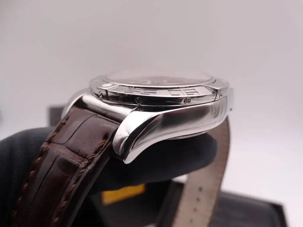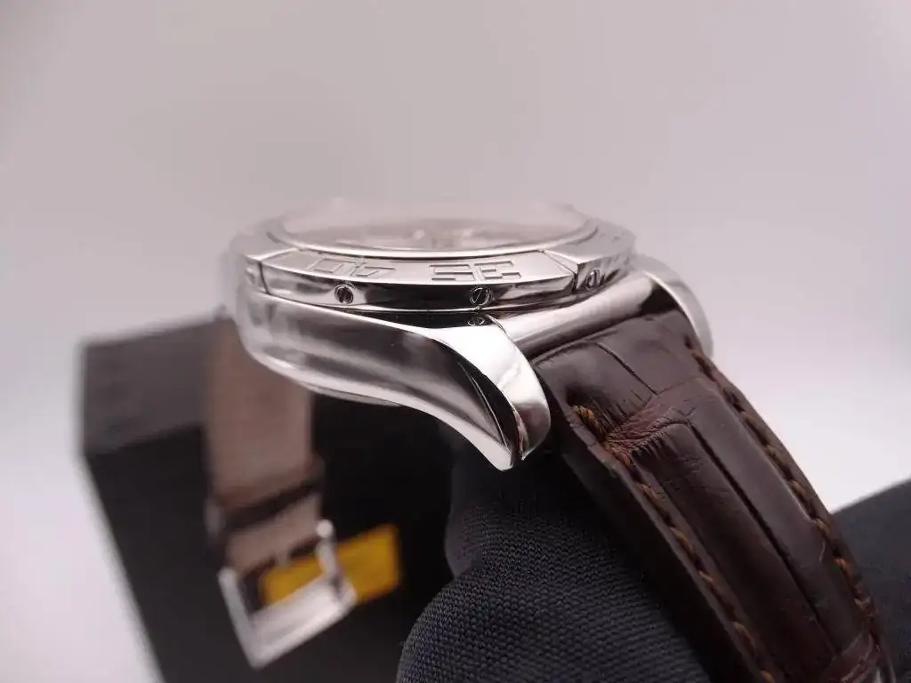 Dentro de la casa Breitling, el Chronomat es una pieza equilibrada que destaca por su sencillez sin renunciar a su marcada estética característica de la marca; destaca notablemente la increíble esfera marrón. Un reloj compensado gracias a sus 41mm que en muñeca se convierte en un reloj perfecto para cualquier muñeca.