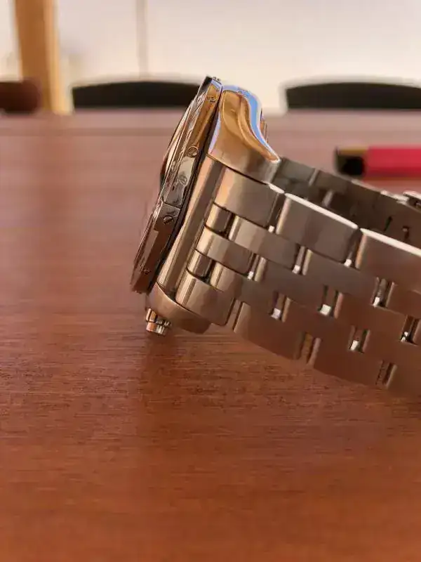 El estado del reloj es muy bueno y de marcha está más que de sobra en un parámetros COSC, aunque quien lo compre debe tener claro que se trata de un reloj usado, por lo que presenta los típicos pelillos de un uso moderado. No tiene marcas profundas ni desperfectos graves. Un pulido y se queda como nuevo aunque lo dejo a elección de su futuro propietario.