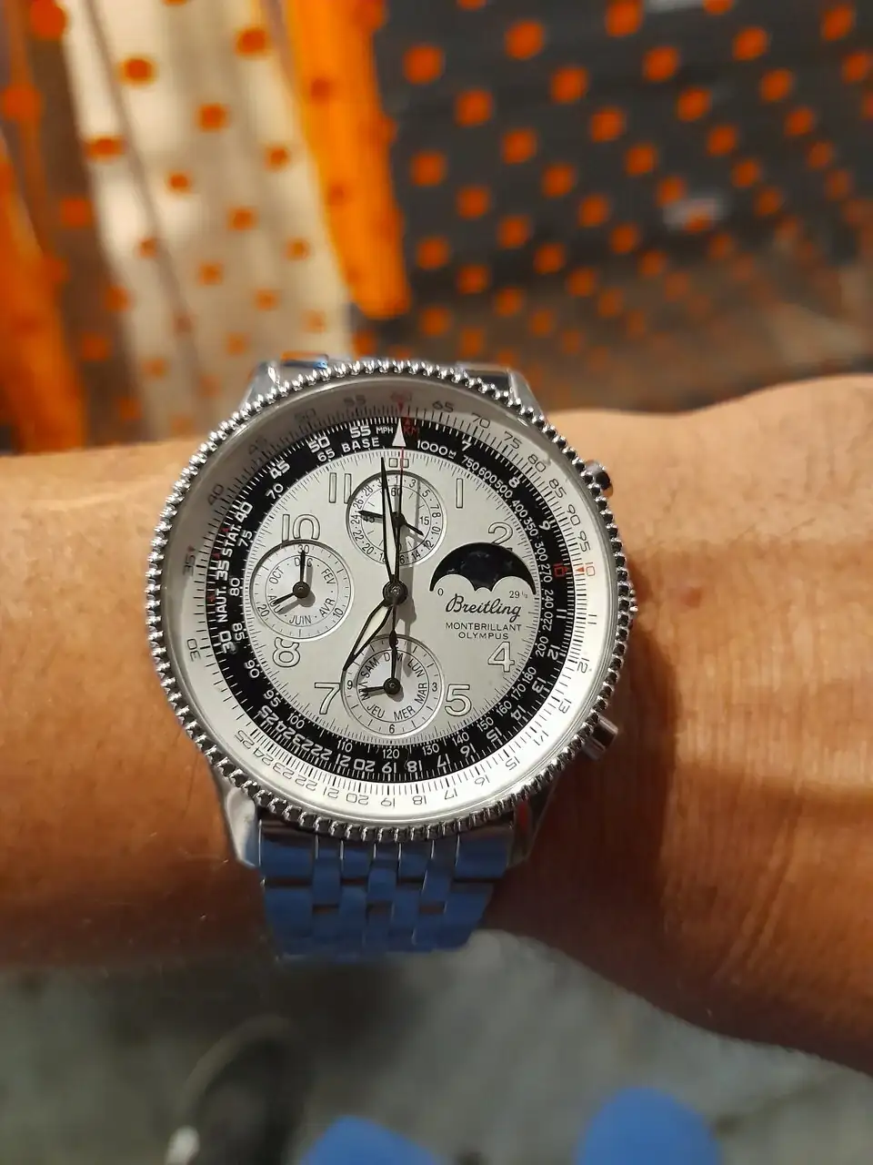 Él que tengo yo ahora es de primer mano de una persona que cuida sus cosas. Nunca viste un relojero, nunca fue pulido, nada. Funciona perfecto, cada dia pierde cinco segundos, pues lo que conozcamos de un Valjoux 7750. Alto y feo, pero indestructible. Como no tengo ningún 7750 en la colección, este Breitling puede entrar.