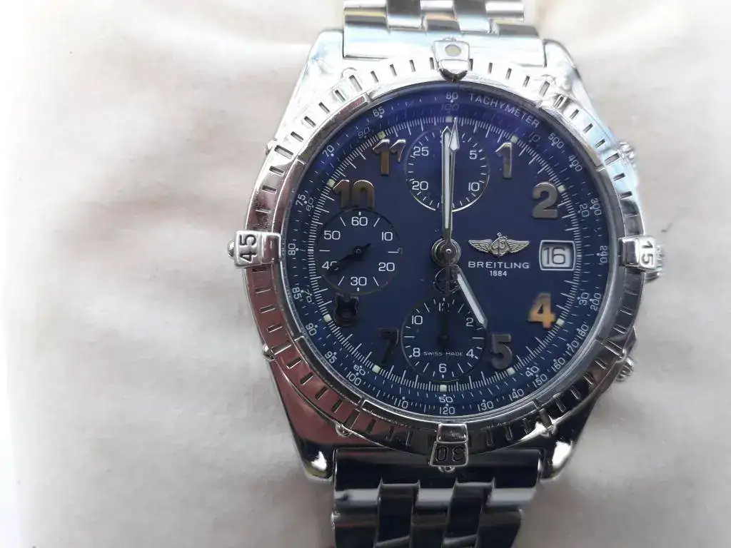 Se vende Breitling Chronomat esfera Azul, el más bonito y también el más buscado de todos los Chronomat. El reloj esta completo con todo, es un reloj de primera mano comprado por mi en su momento en concesionario oficial , el cual ha tenido muy poco uso, muy esporádico y muy moderado, siempre muy cuidado, no presenta rayadas ni golpes de ningún tipo...el brazalete Pilot profesional está completo y nuevo sin estrenar ya que anteriormente lo llevaba con correa...cualquier duda o preguntas por privado, siempre respondo a todos...
