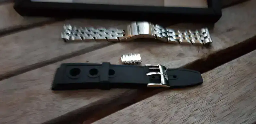 El reloj se encuentra en un excelente estado cosmético y de marcha. Se le realizo la ultima revisión en 2013. Las correas se encuentran en un excelente estado. Trae su caja original de bakelita y su caja exterior. Falta la garantía que no me fue remitida por el anterior propietario que a su vez lo había comprado al mercante Peterway. Por último el precio 1700 € con la Ocean Race, 1950 € con Ocean Race y el brazalete pilot .