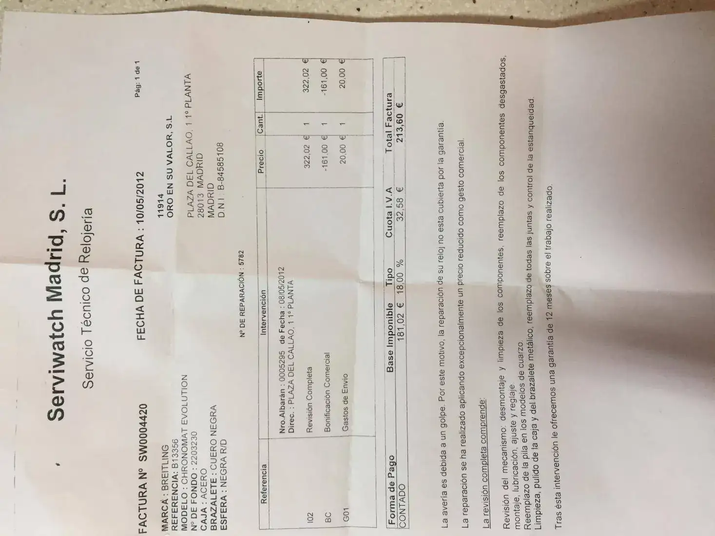 ¿Garantía vigente? (s/n): No