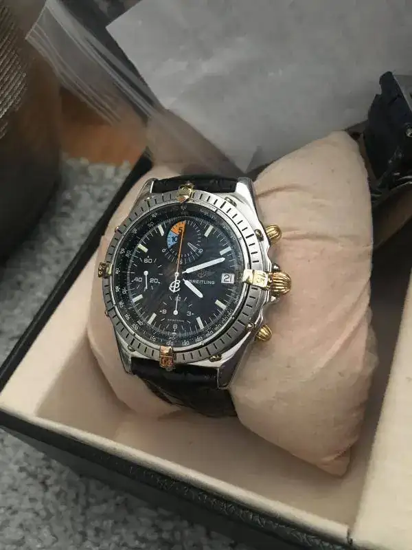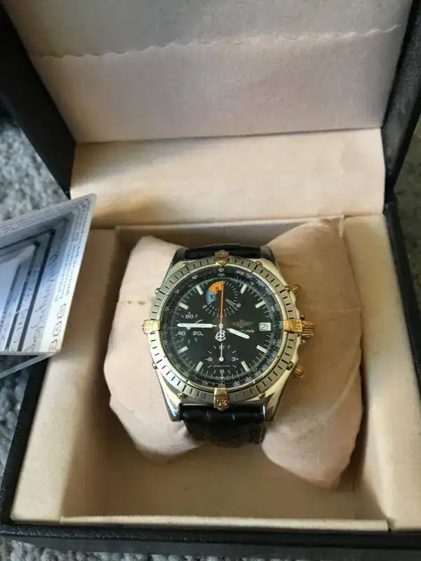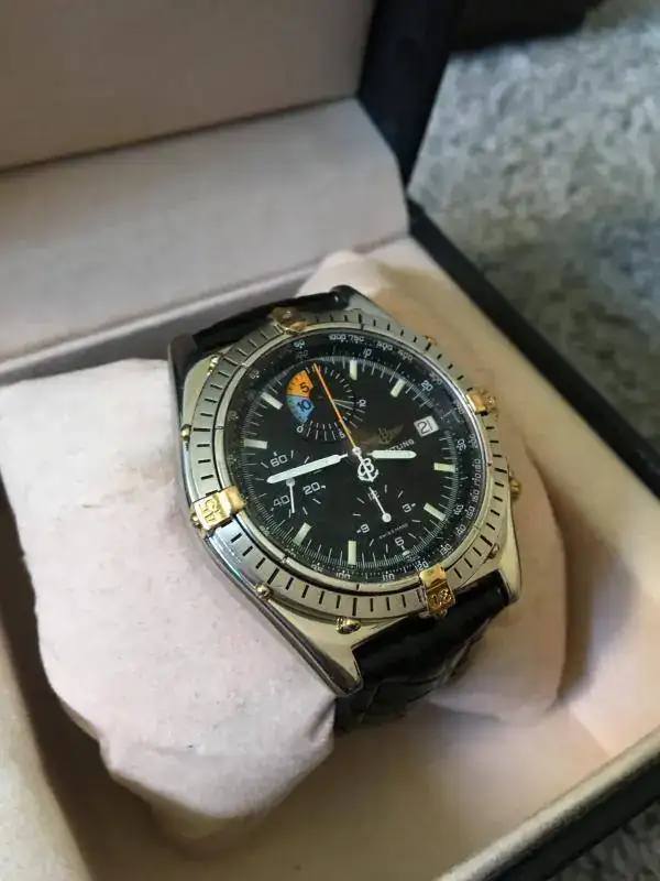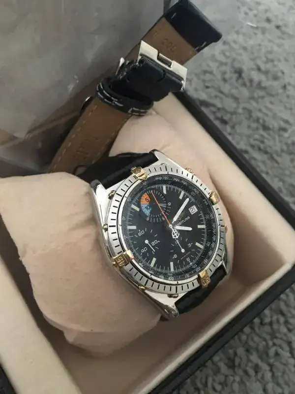 Es un reloj de la mítica serie chronomat, y lleva una complicación especial, para medir el tiempo de salida de los barcos en las regatas, con control de los 15 primeros minutos de las salidas de los barcos, por ello en la esfera debajo de las 12, lleva tanto ese color azul y naranja tan característico.