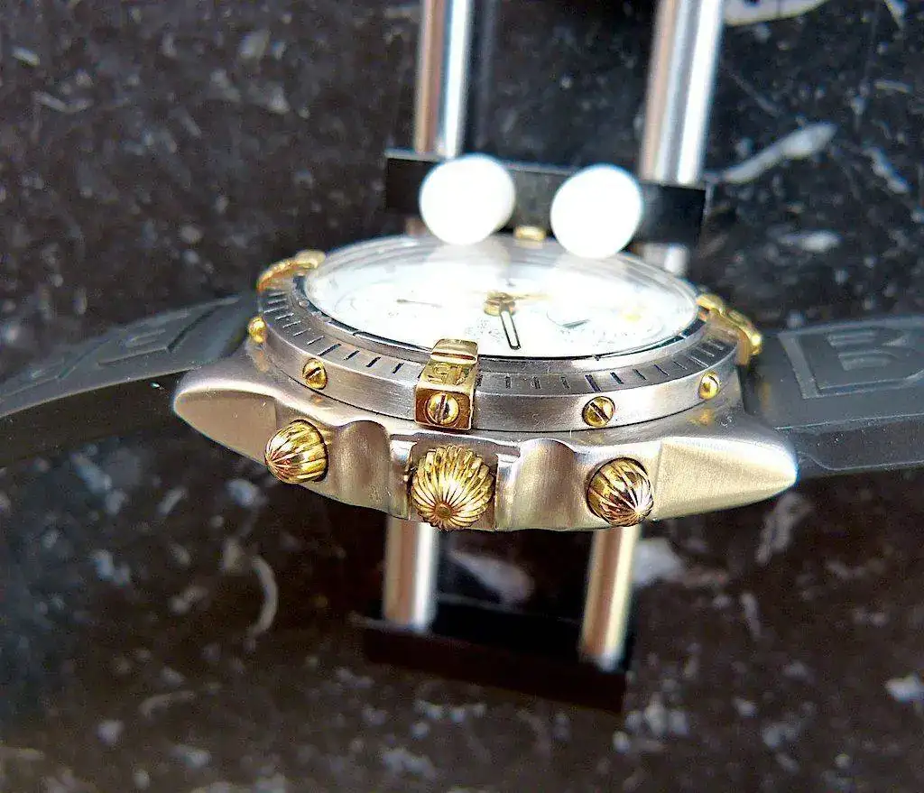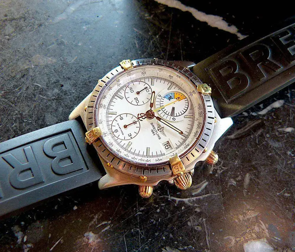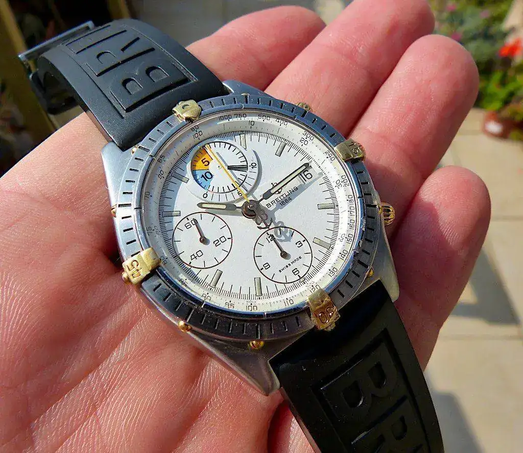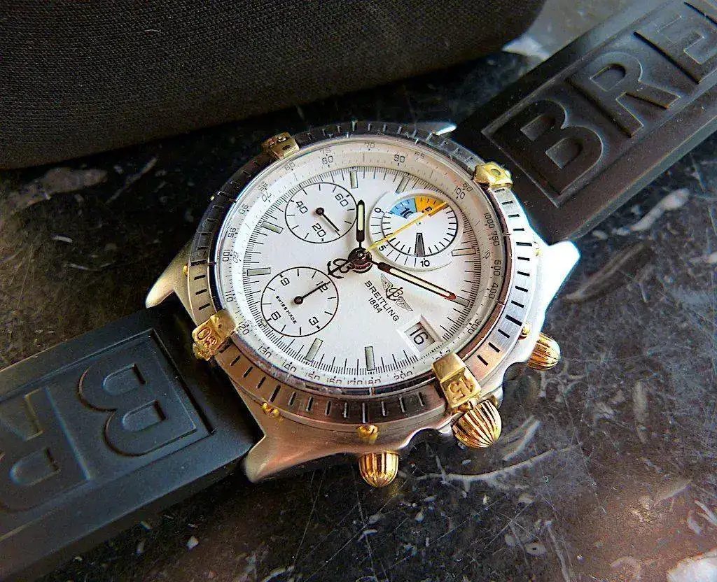 Breitling Chronomat en su rara edición Yachting con esfera blanca y contador de regata. El reloj está en muy buen estado general con revisión oficial de 2016, factura, manual, estuche de servicio y un caucho original prácticamente sin uso.