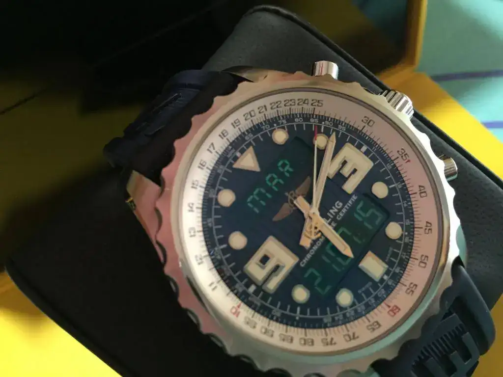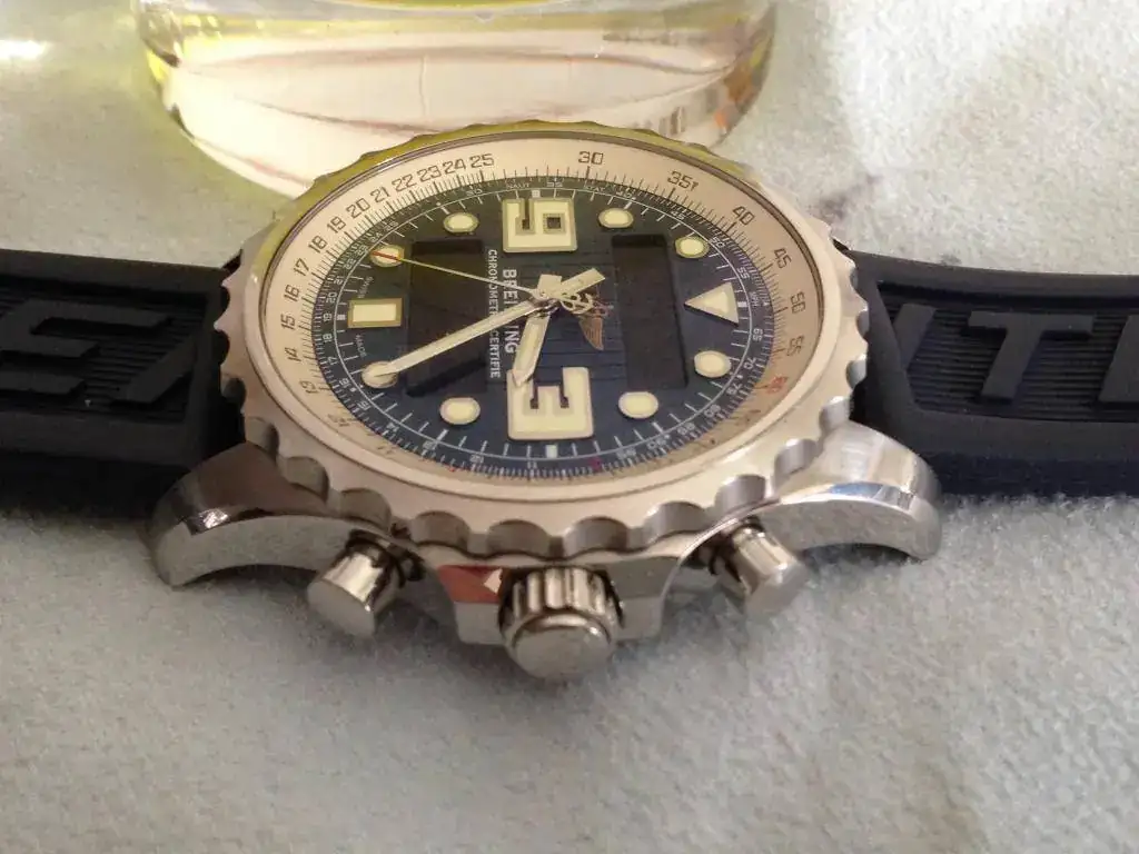 Saco a la venta este precioso reloj de la gama alta de Breitling en cuanto al sistema cuarzo se refiere, un reloj en un estado excepcional, vá con un caucho de 24 original con tan solo un par de puestas