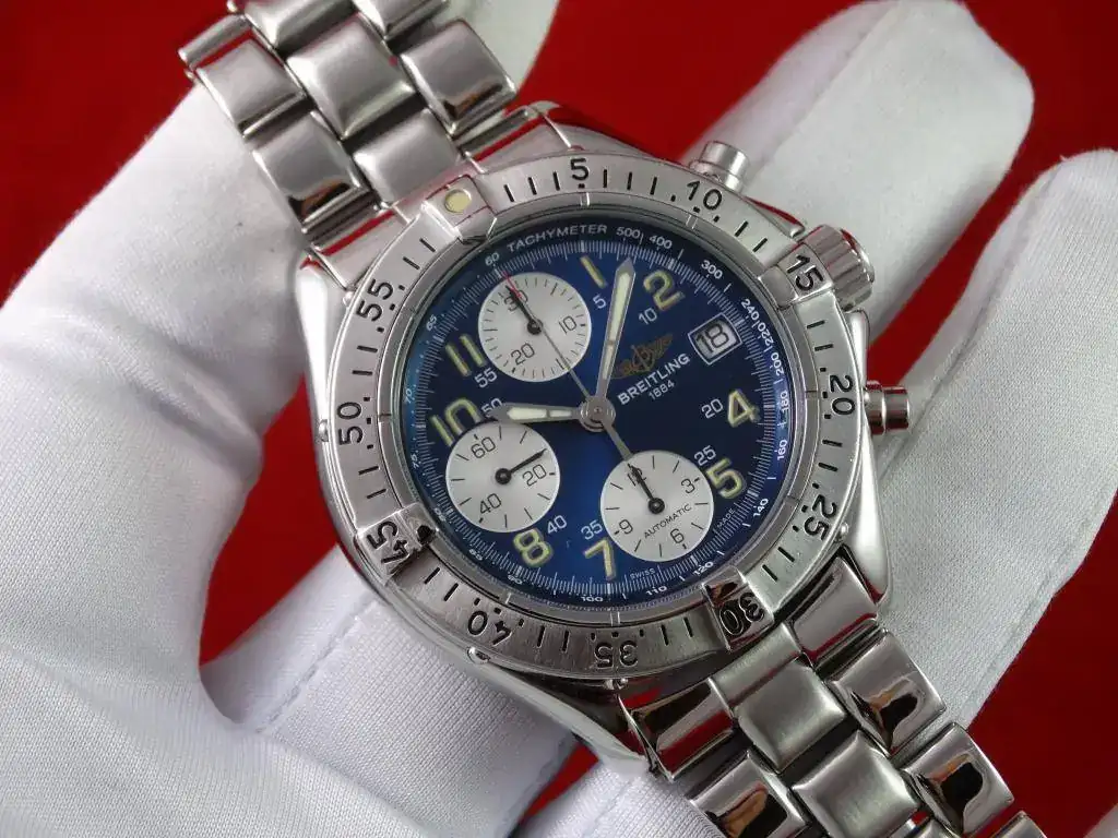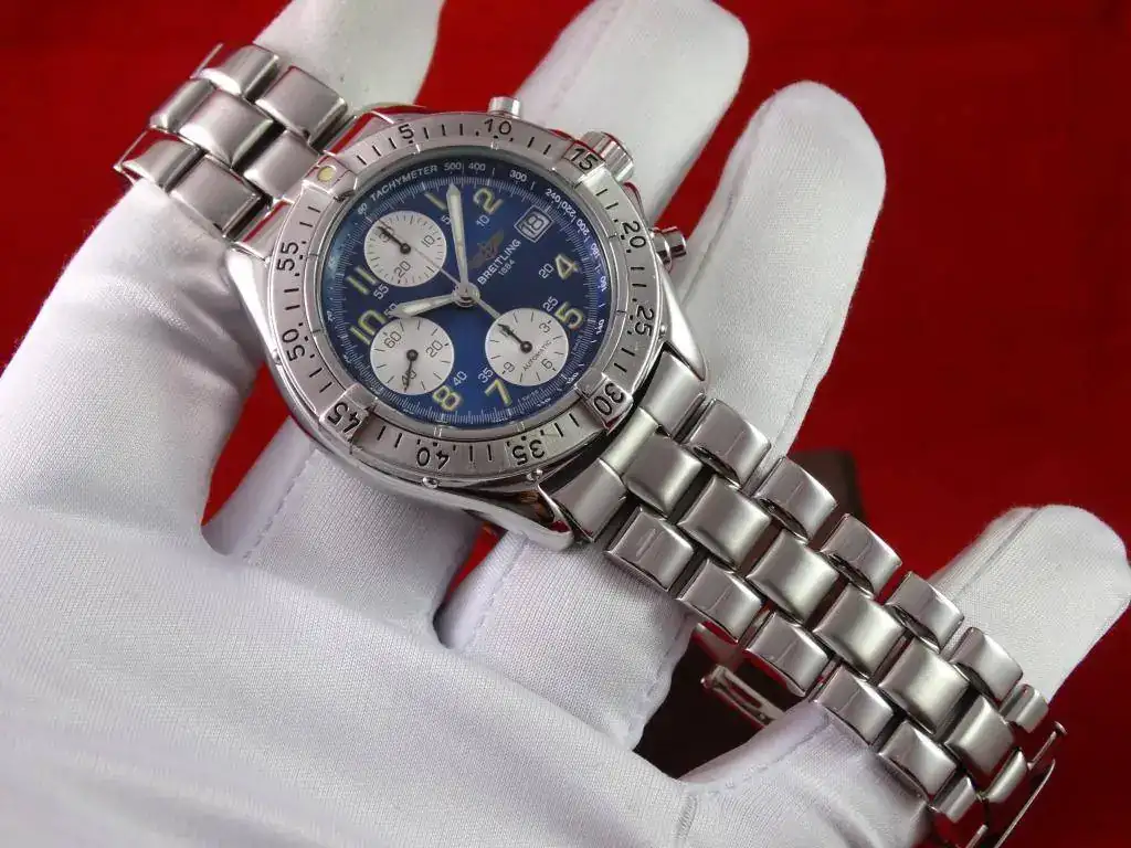 En la época mas gloriosa de los diseños Breitling, con sus características cajas, diales y biseles, se presentó el Colt, un reloj que en su combinación de acero, con calibre cronógrafo y la esfera azul, ha llegado muy lejos y sigue siendo una pieza muy apreciada, entre muchos factores, por su tamaño.