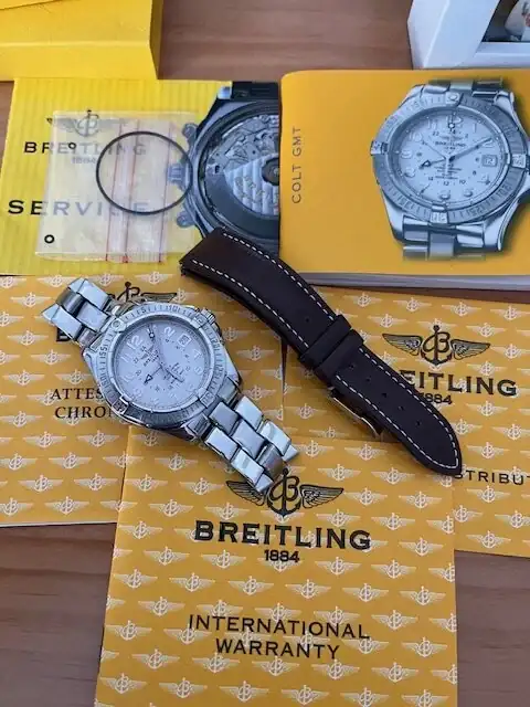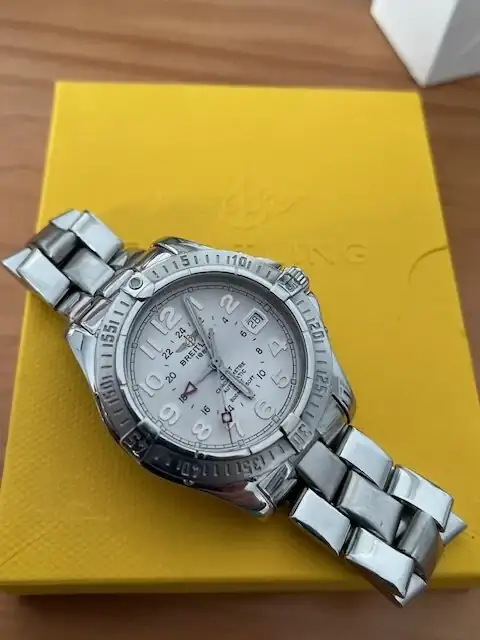 Vendo este reloj automático de la marca suiza Breitling. El reloj mide 40mm de diámetro, se entrega completo. con todas su caja y papeles. Se encuentra en buen estado pero no es un reloj nuevo. Ha pasado una revisión en el SAT
