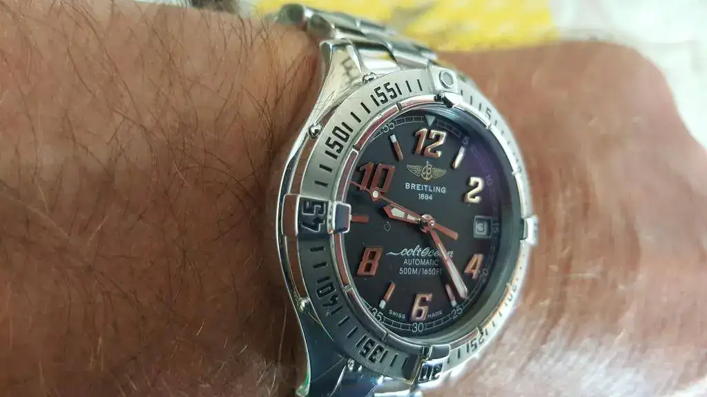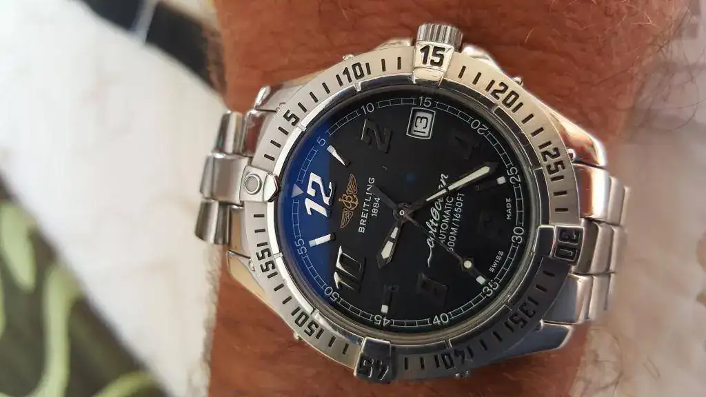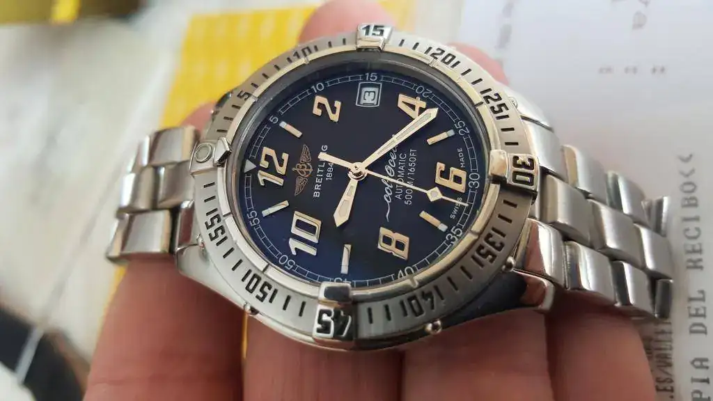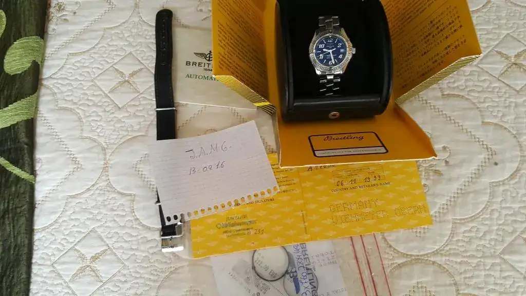 El set es completo acompañado con nato negra. Cabe destacar que se le a echo la revision en su casa breitling. Con cambio de cristal juntas y engrase en mayo del 2016.. o sea muchos años de funcionamiento. El estado es impoluto ni rayas ni golpes ninguno. Solo los tipicos pelitos en el cierre del armis..el estado de marcha va en +2 segundos diarios. El precio 1000eur para el primero que me pida el n.cta. cualquier duda o consulta privado o whuasspt 639888824..saludos i unas fotitos de esta maravilla.