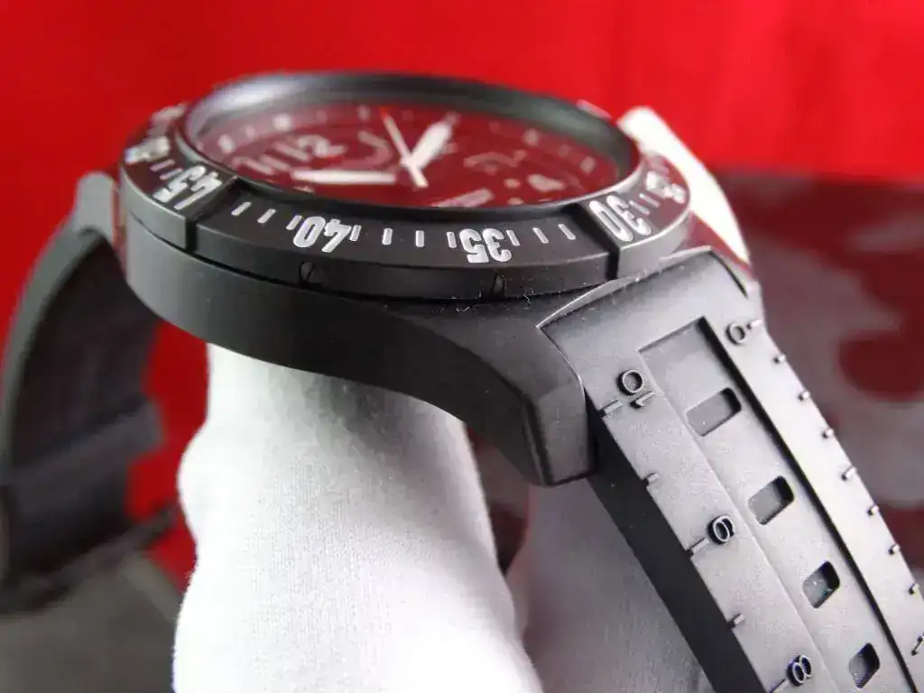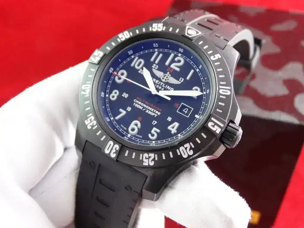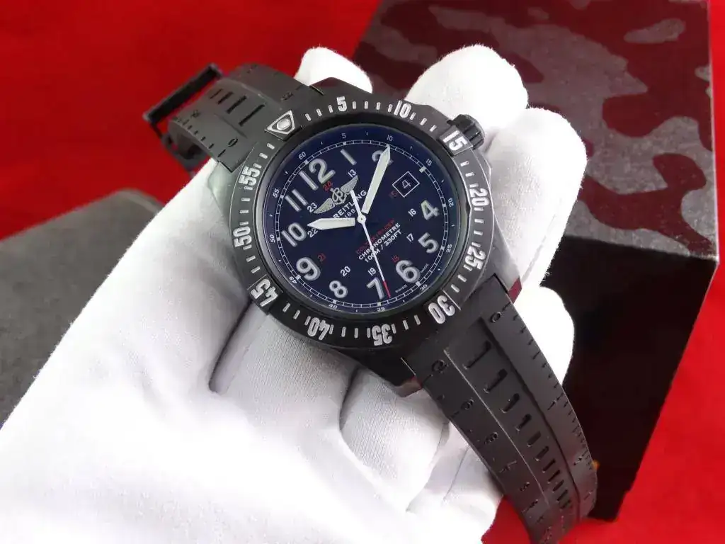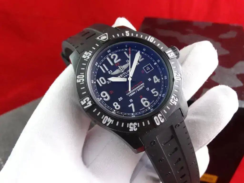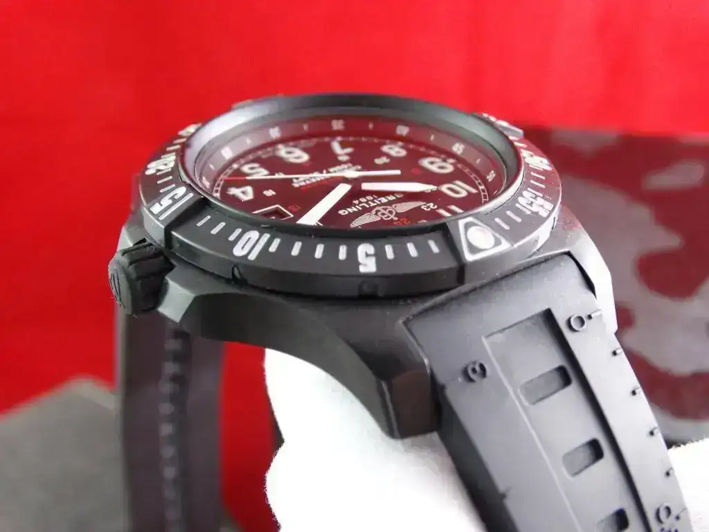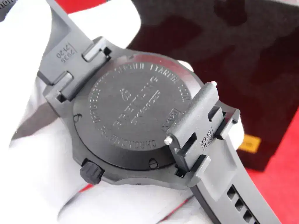 Breitling sorprendió cuando lanzó al mercado el material Breitlight, un plástico composite con acabado de carbono que promete una ligereza 3,3 vece superior al titanio y 5,8 veces superior al acero y que, sin embargo, su resistencia al rayado, tracción y corrosión es excepcional, así como sus propiedades antimagneticas y su estabilidad térmica. Un reloj que junto con su calibre supercuarzo hacen el conjunto perfecto. Destaca el fantástico sistema de cambio rápido de correa, lo que permite una versatilidad y fiabilidad absoluta.