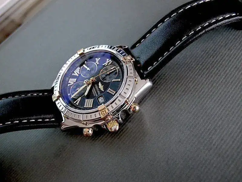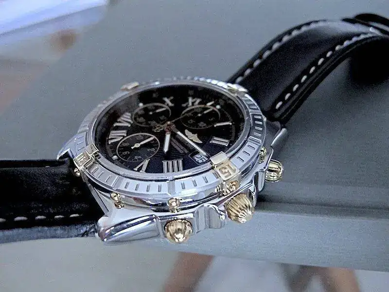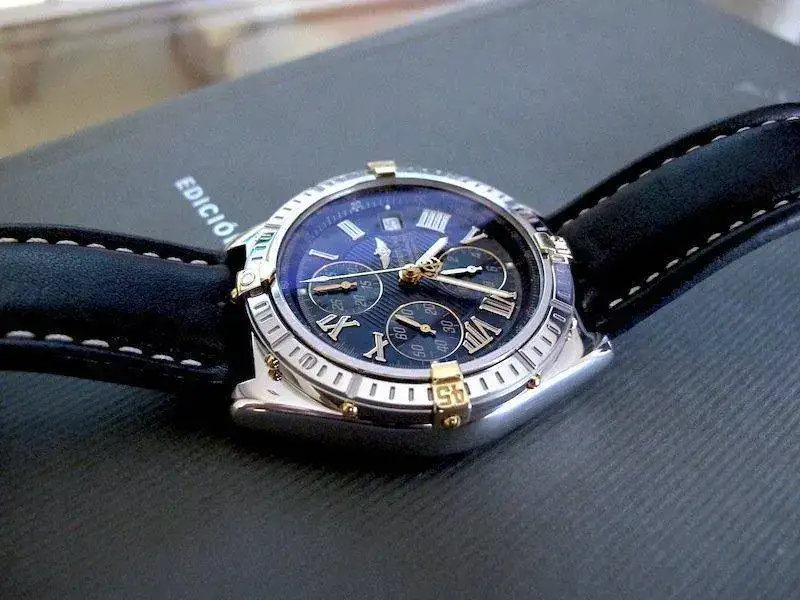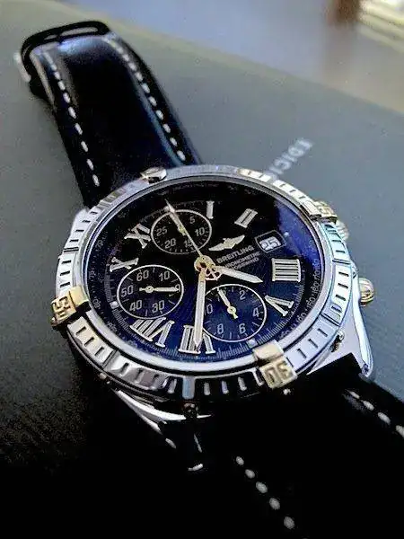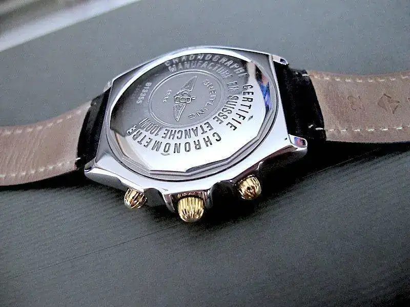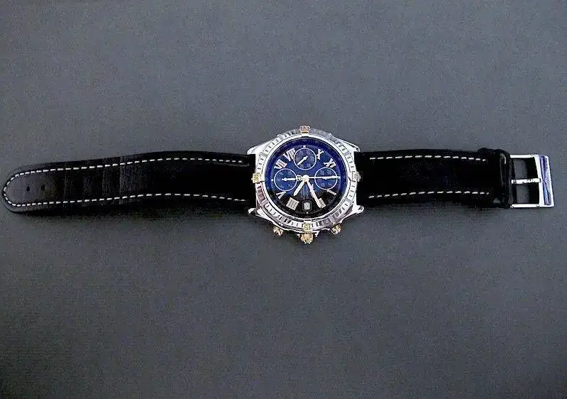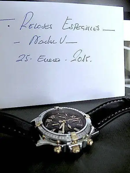 El reloj, fue comprado por mi personalmente en D.O. Breitling en fecha Diciembre de 2003. Se ha usado en contadas ocasiones, con lo que su estado sin dejar de ser un reloj usado, es realmente muy bueno. Su marcha es aproximadamente de +2 seg día . No acompaña ni caja original ni documentación pues desgraciadamente la extravié a causa de un cambio de domicilio. Paso a dar algunos datos detallados de la pieza: