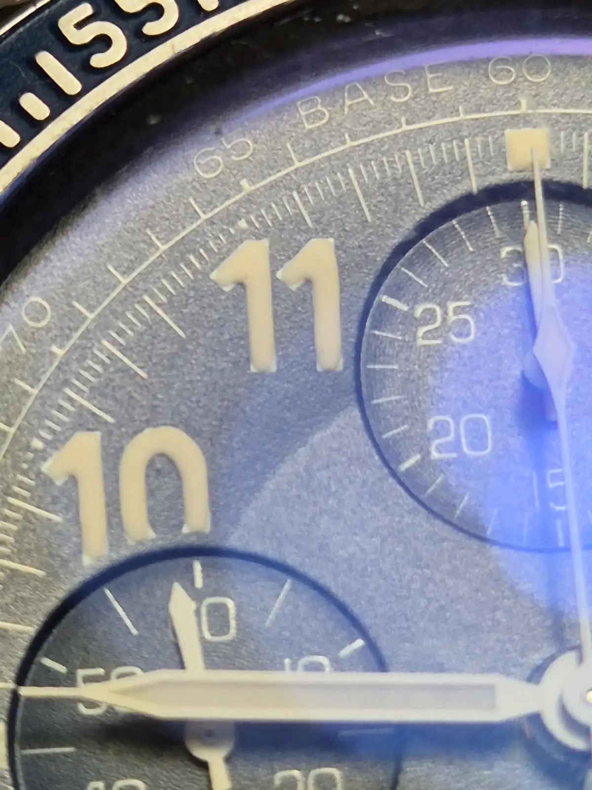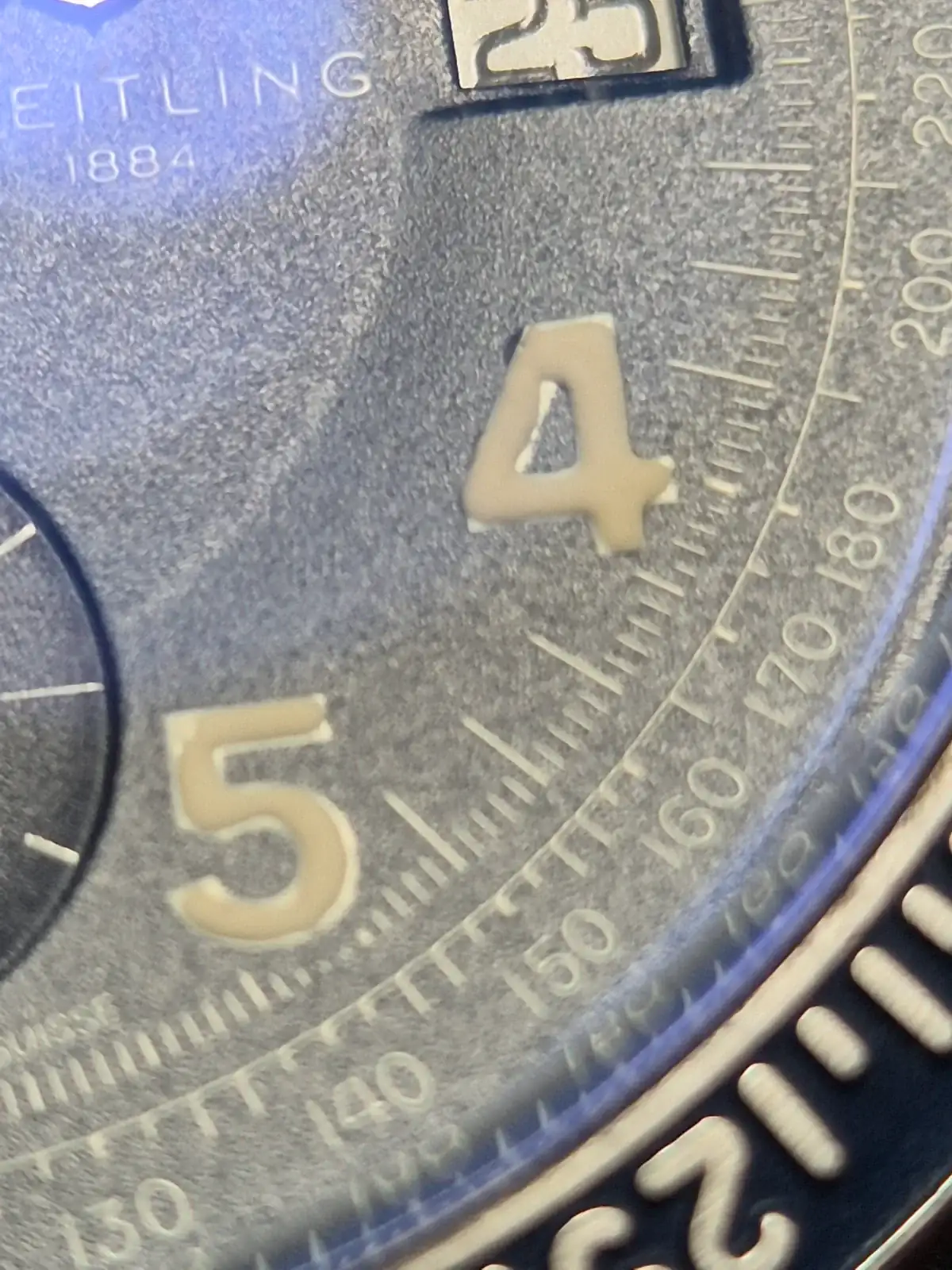 Es normal que la luminiscencia presente desgaste o que incluso en su día no hubiese quedado perfectamente asentada en los números árabes. No es algo apreciable a simple vista (a menos que sea de pájaro) o tras examinarlo con lupa o escudriñando mucho los números.