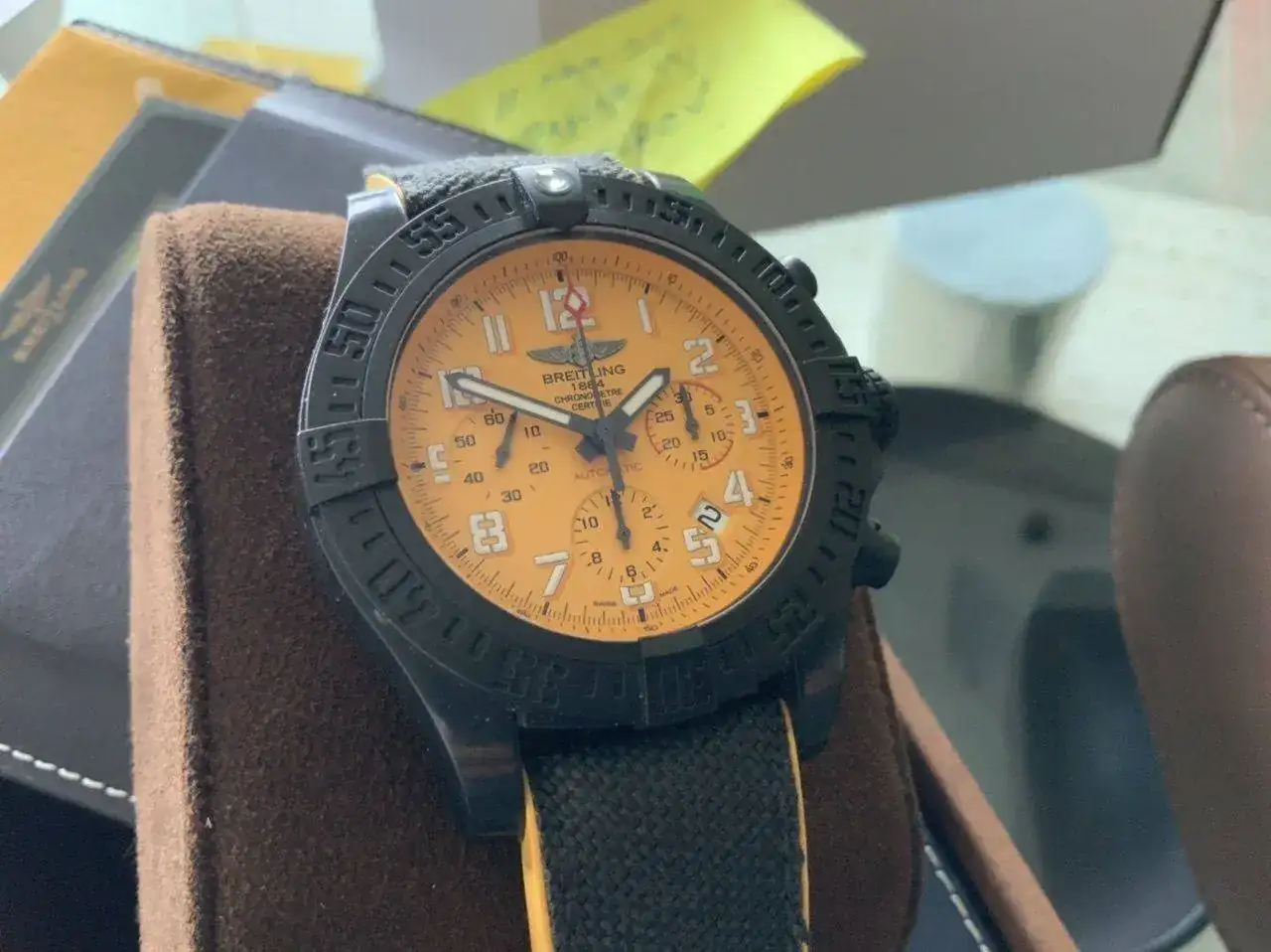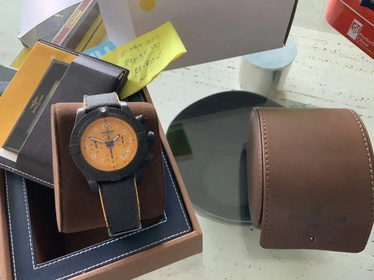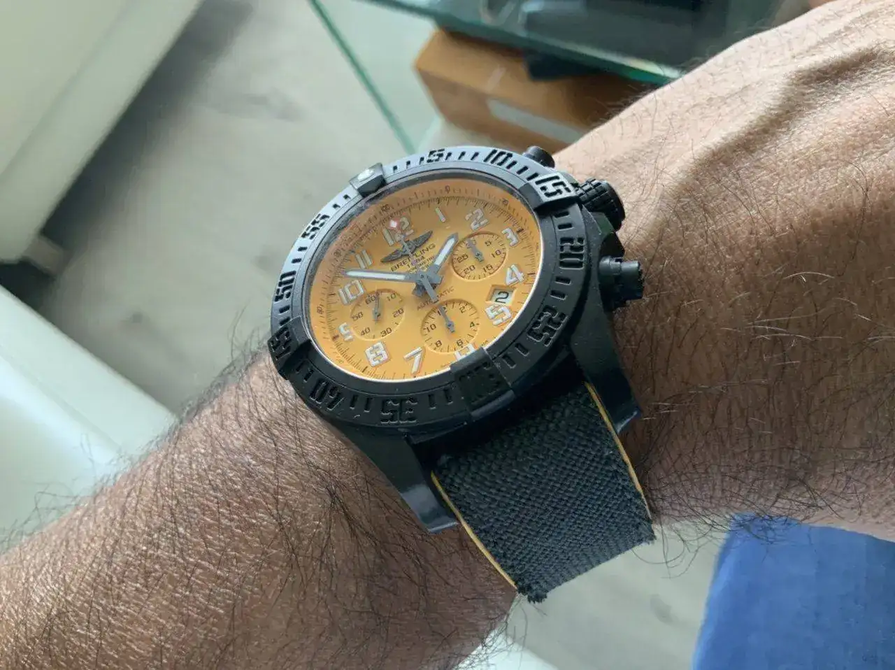 Entre sus características destacar la caja de 45mm, fabricada en el novedoso material “Breitlight”. Resistente a golpes rayaduras, corrosión, etc. Esto hace que sus 45mm sean muy cómodos de llevar en la muñeca.