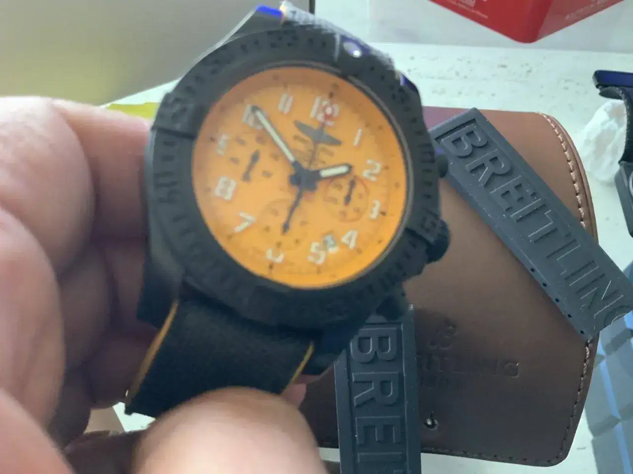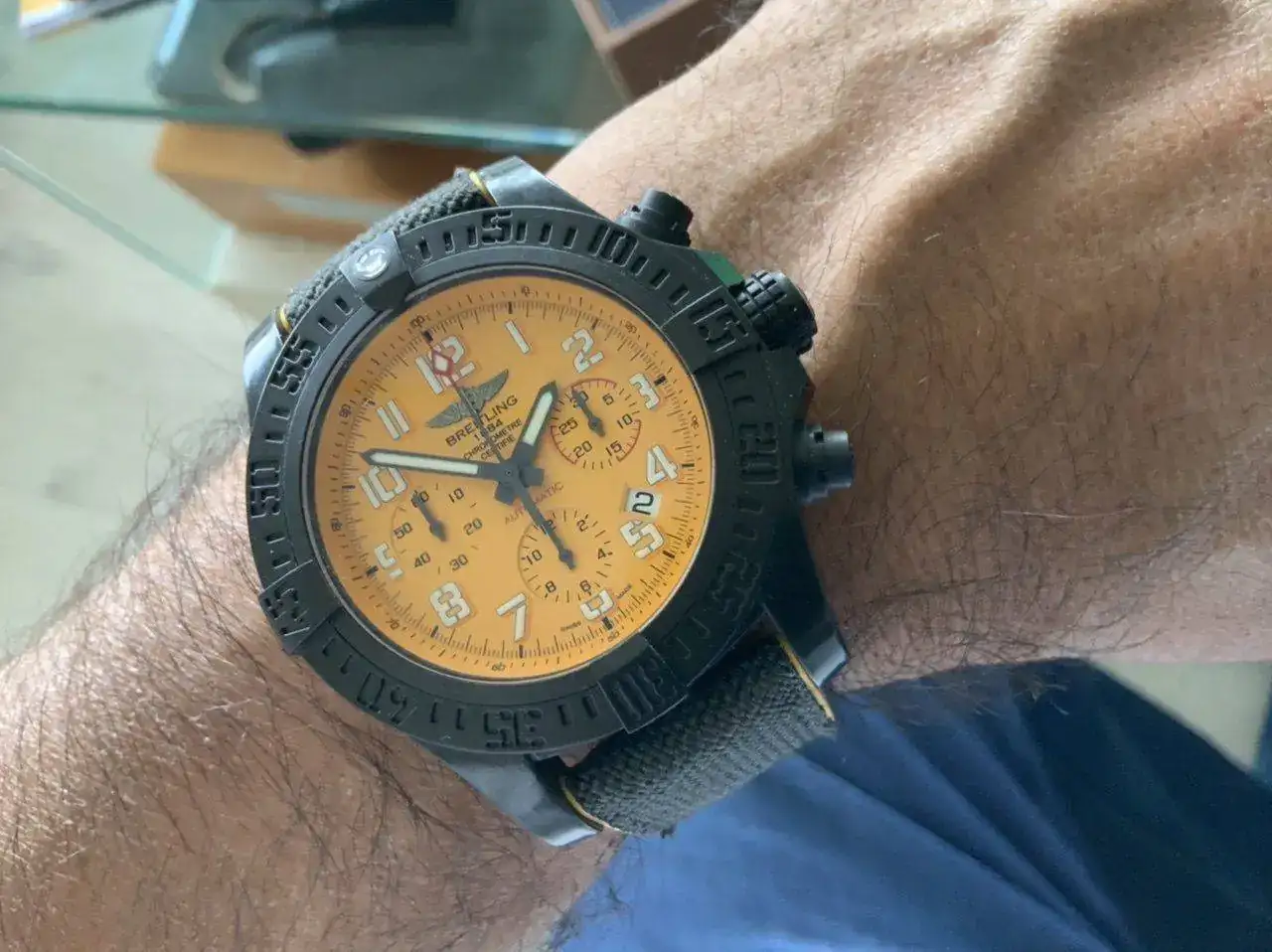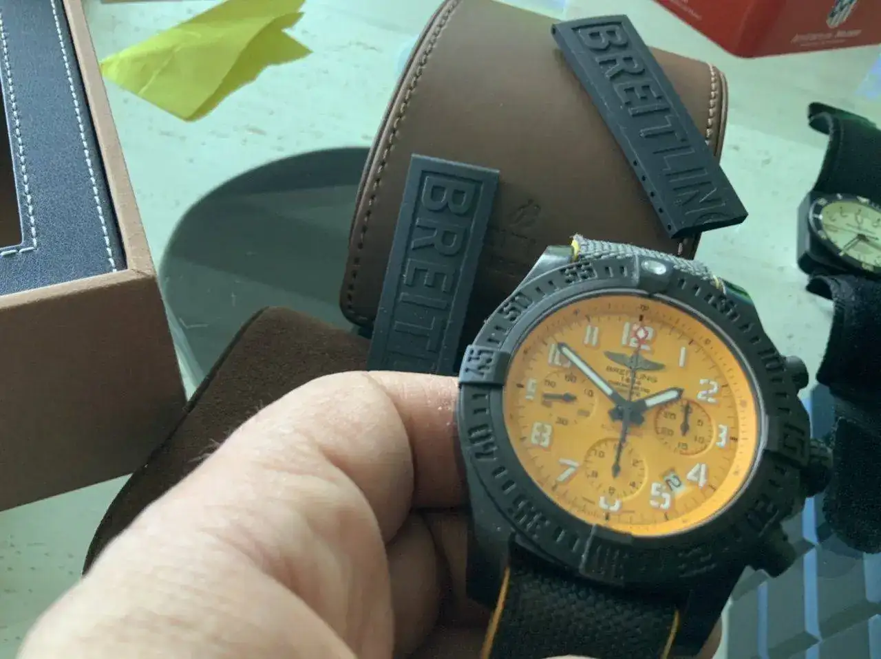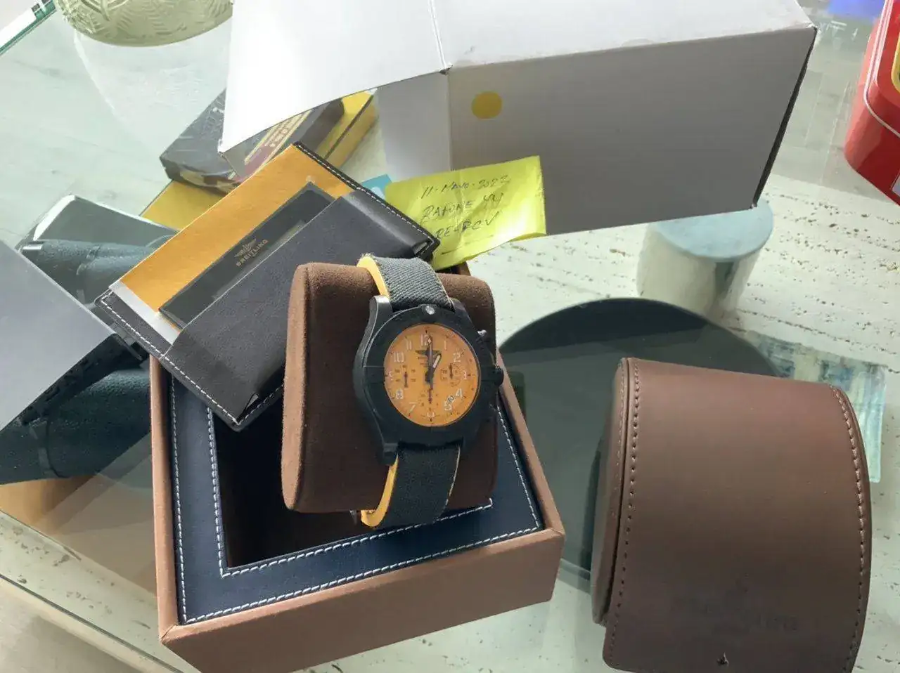 Entre sus características destacar la caja de 45mm, fabricada en el novedoso material “Breitlight”. Resistente a golpes rayaduras, corrosión, etc. Esto hace que sus 45mm sean muy cómodos de llevar en la muñeca.