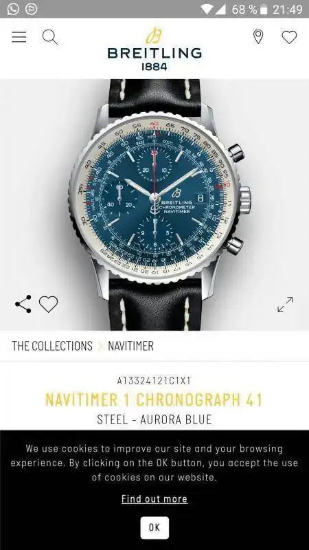 Me gusta mucho el Navitimer B01, pero este con la configuración de subesferas tipo Valjoux 7750 se me atraganta, no me gusta. Otro detalle es el texto de las 3, no está compensado, y queda mas hueco de esfera libre por la parte de arriba que por la de abajo.