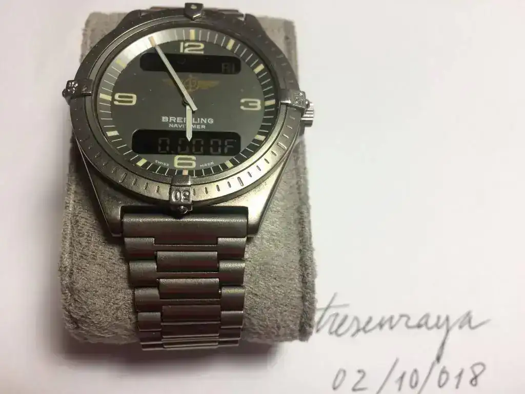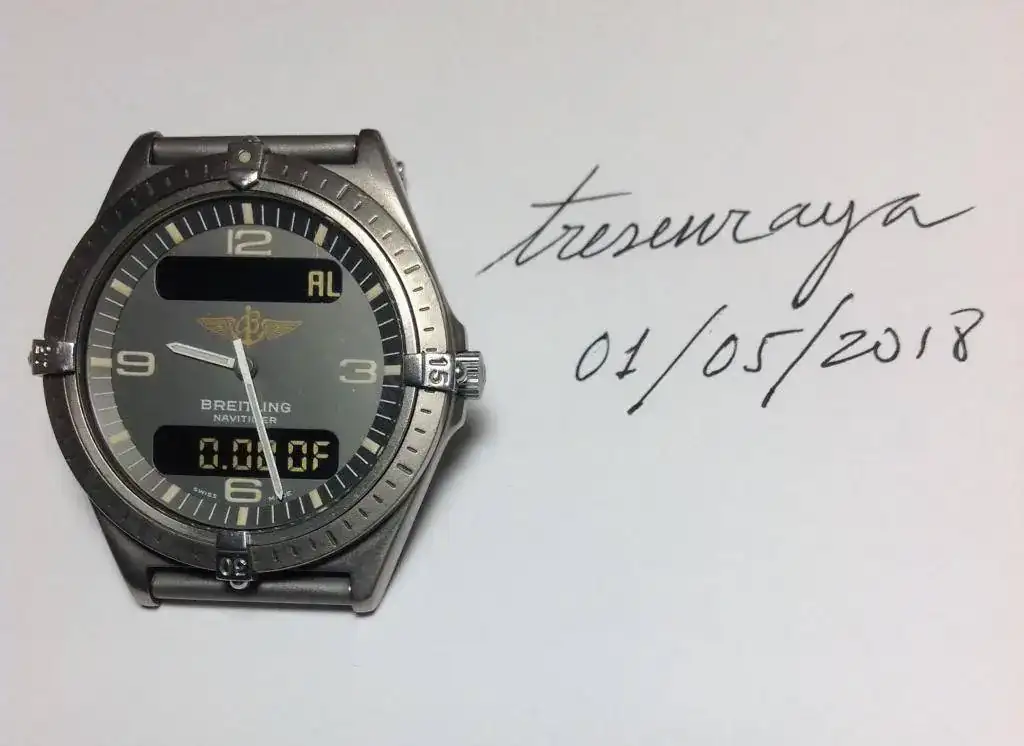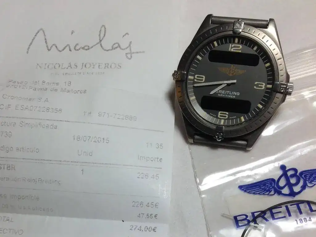 Este es uno de aquellos primeros Navitimer con Ref 80360. Hace menos de tres años se le hizo una revisión completa con cambio de corona y agujas; y hace unos días se le cambió la pila, aunque no se verificó la estanqueidad.