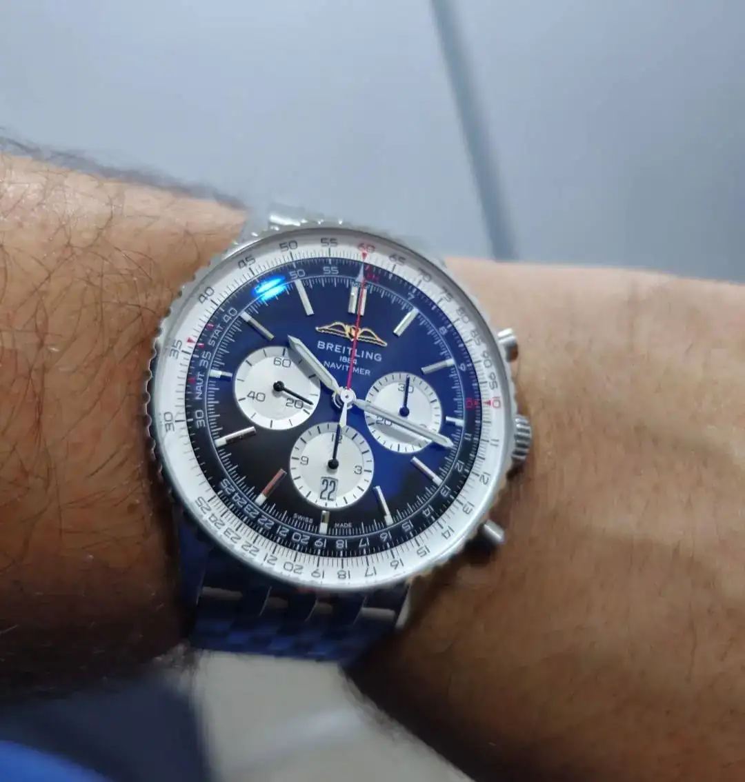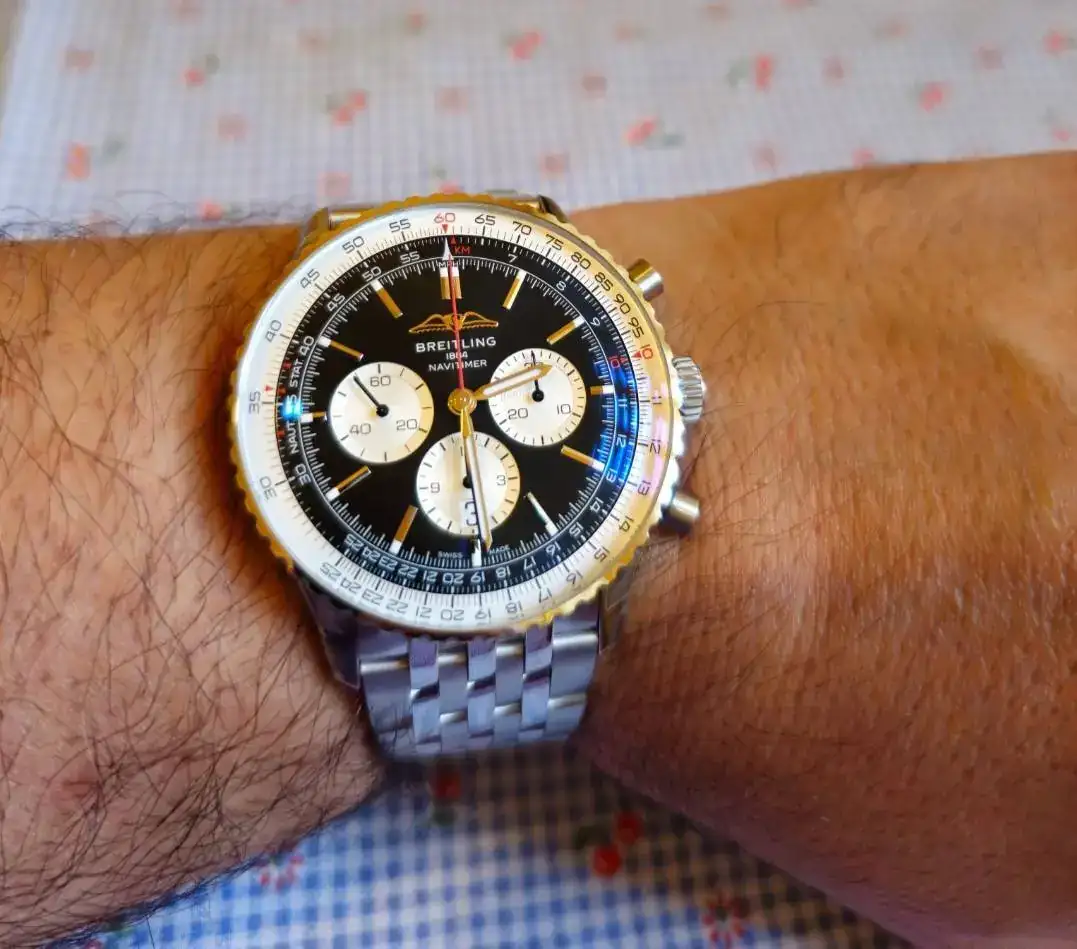 Por otra parte, hace unos meses me probé recientemente el Navitimer, me gustó como me quedaba y el nuevo diseño. El reloj ha sido de mis preferidos desde que empecé con esta afición hace ya bastantes años.