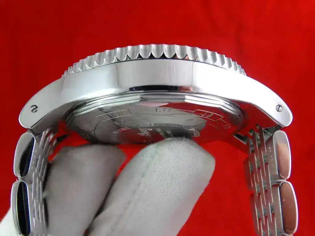 En este caso tenemos un reloj claramente contundente, no en vano pesa 220 gr. con el brazalete completo; hay mucho acero, es un reloj muy robusto, aunque por contra la forma de los eslabones lo hace tremendamente cómodo. Aun así, no aparenta un tamaño tan grande como pueda parecer por sus 47 mm. El reloj es para aquellos que gustan de la estética Breitling, con muchos pulidos al espejo, armis con personalidad, esfera con contenido, etc. No se trata de un reloj para muñecas pequeñas, pero sí para aquellos que gustan de un reloj con presencia.