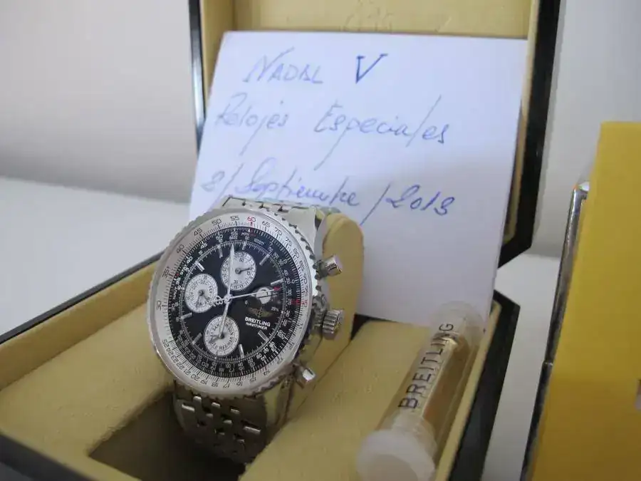 Con respecto a su marcha, es de las piezas más exactas de las que he tenido y jamás me ha dado ninguna clase de problemas técnicos. Decir que está completo de toda su dotación, documentación, manuales y certificados Breitling así como cajas , regla de cálculo y punzón para el ajuste de las funciones. También el brazalete se encuentra completo de eslabones.