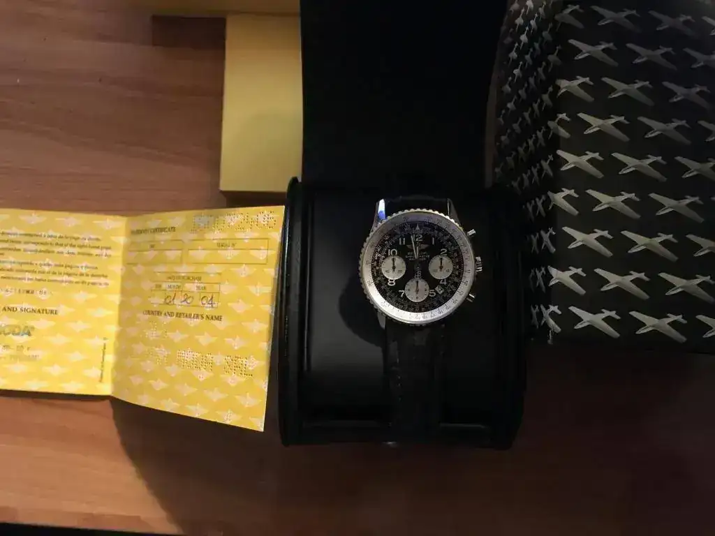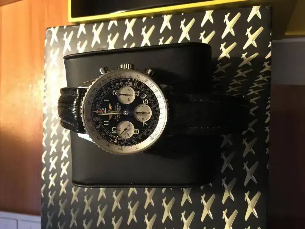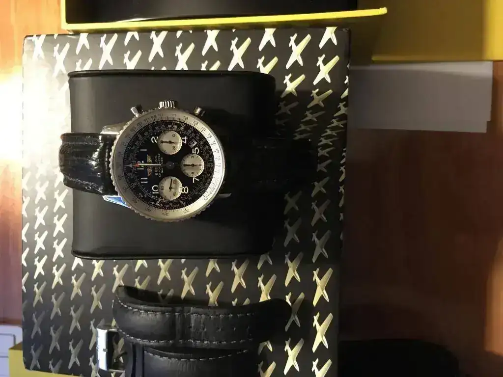 Hola , buenas noches. Saco esta pieza de Breitling para realizar un cambio por alguna pieza que pueda utilizar con mayor asiduidad. Para este cambio, las piezas preferiblemente deportivas, automáticas, valor similar o algo superior, mínimo resistencia al agua 10 ATM (100m), con brazalete acero o caucho. Marcas Breitling, Omega, IWC, Grand Seiko Tag,etc, Dispongo de una pieza muy similar , este es el motivo por lo que saco esta para el cambio. Es un Breitling Navitimer con las subesferas 3-6-9. Completo de dotación y en un excelente estado, nada a reseñar. Se envían fotos mucho más detalladas a quien lo solicite, pero como he señalado el estado es excelente