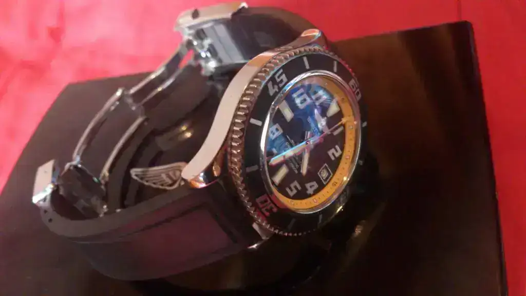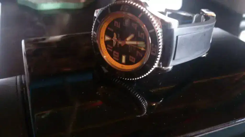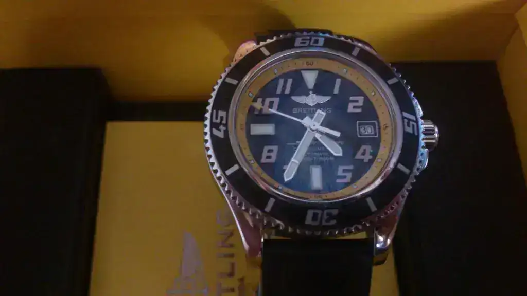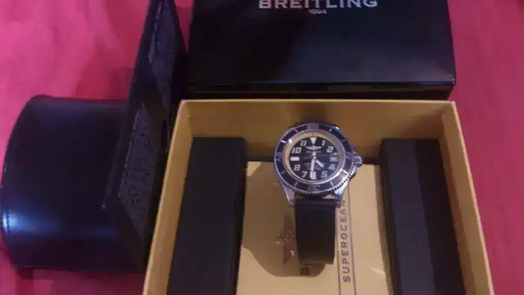 Hola compañeros, saco a la venta este Breitling Súper Ocean, lo compré a un gran forero hace pocos meses en un estado muy bueno y apenas tiene alguna puesta. Por destacar algo los típicos roces del deployante y mínima marca en el bisel a la altura del 20, el resto en bastante buen estado.
