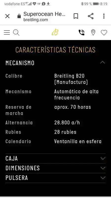 Movimiento: Breitling B20 Manufactura