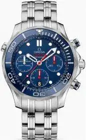 D) Omega Seamaster Diver300m Co-Axial Chronograph 44 MM, es el más caro y la correa no me gusta nada...pero quería mencionarlo, creo que lleva calibre de la familia Valjoux 7750, con muy buena reputación según he podido leer, 300metros.