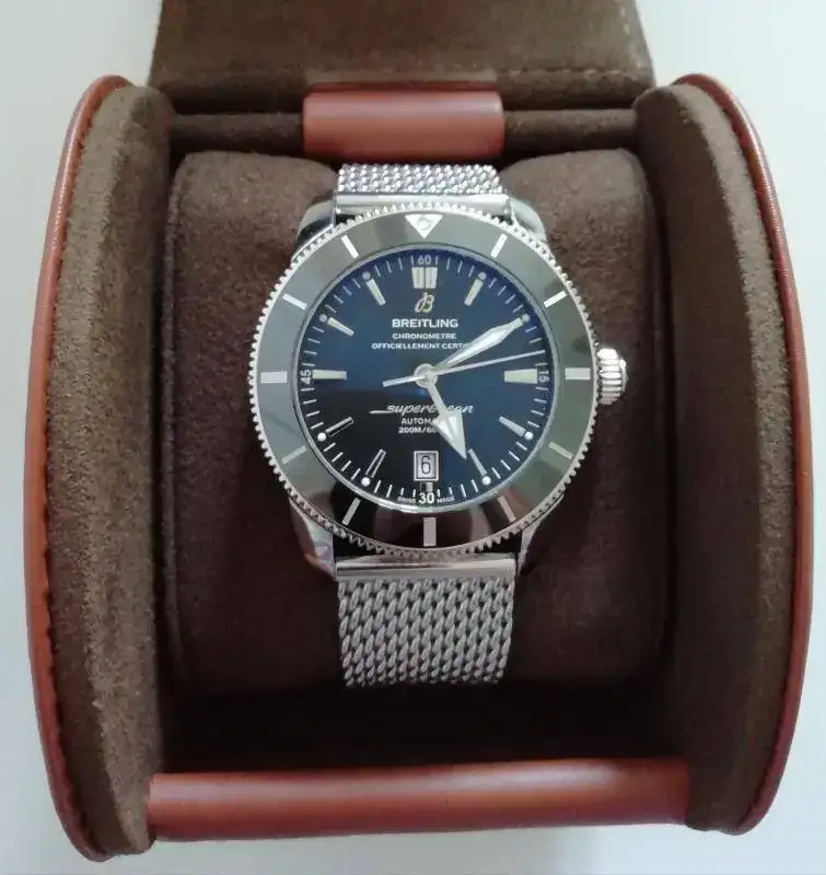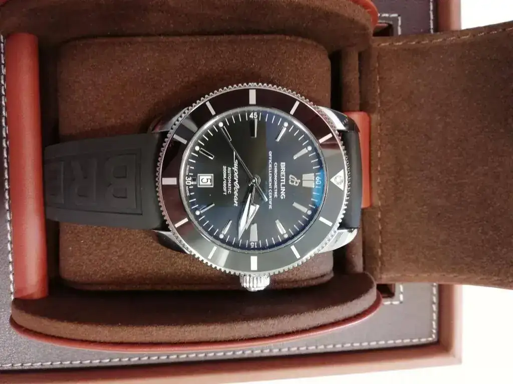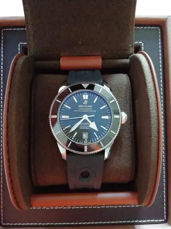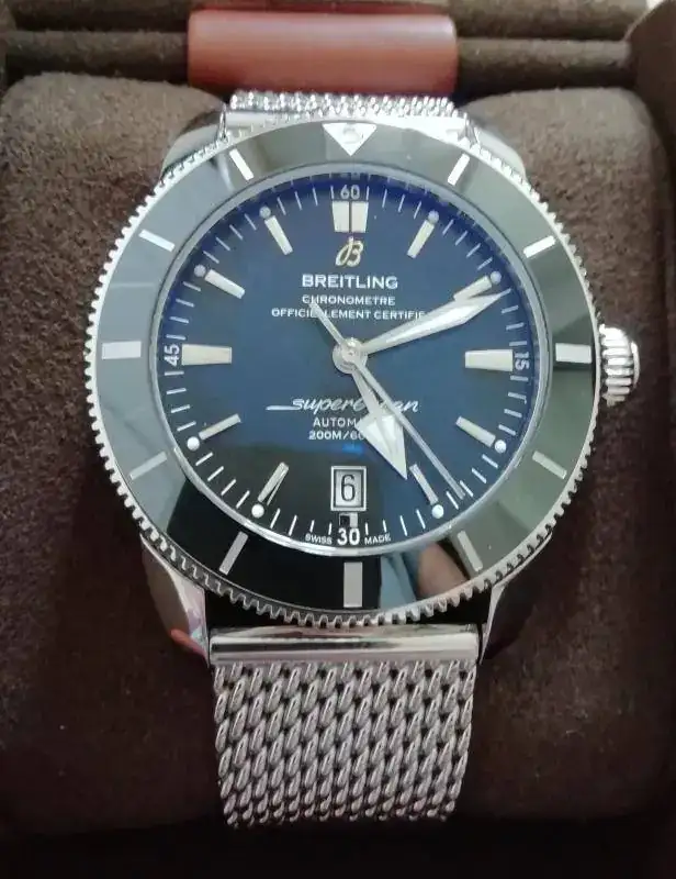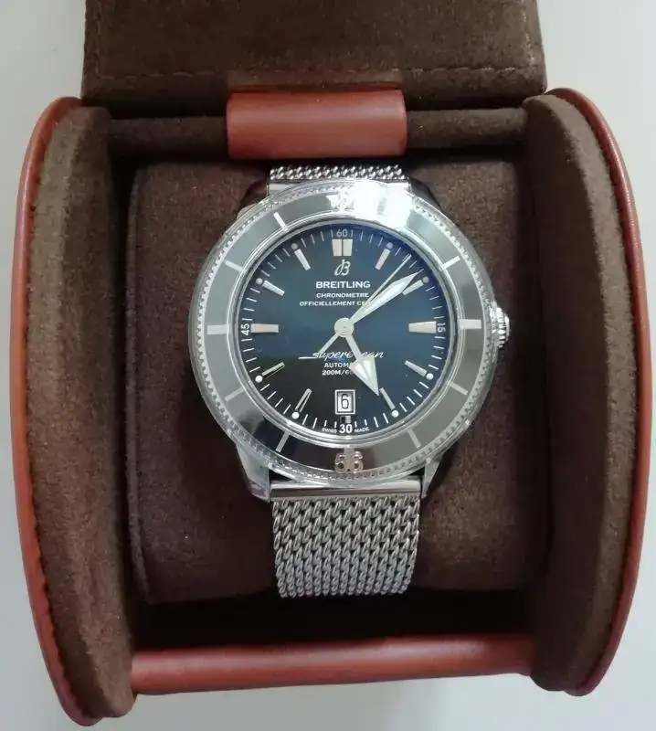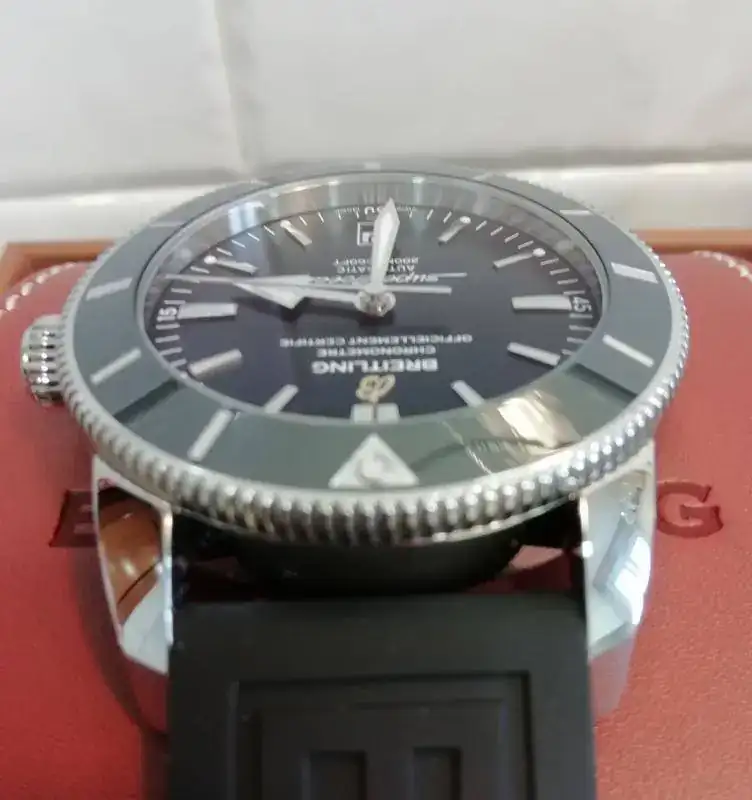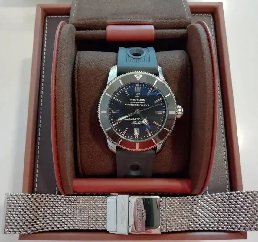 Buenas tardes, saco al FCV este relojazo, Breitling SuperOcean Heritage II de 46 mm, con el nuevo calibre manufactura B20 de 70 horas de marcha, bisel cerámico, milanesa original y caucho de 24 mm con la leyenda "Breitling".