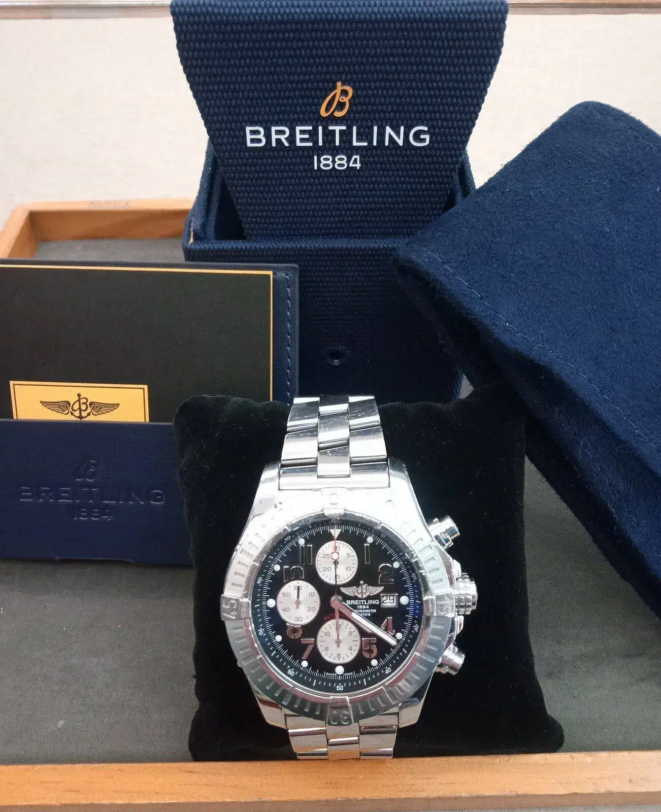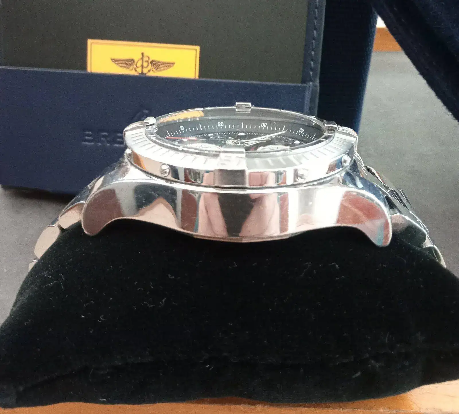 Comentar que no conservo la caja y papeles originales, pero entrego con caja modular original de Breitling espectacular más estuche de viaje..porta librillo es muy bonito el conjunto.