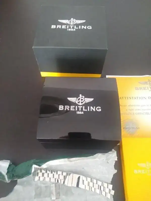 Completo de todo, caja de baquelita, sobrecarga de cartón y funda del reloj de piel, así como documentos y manuales.