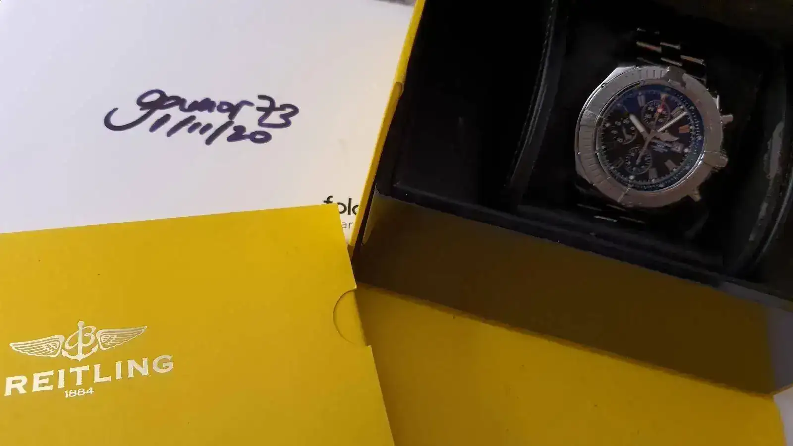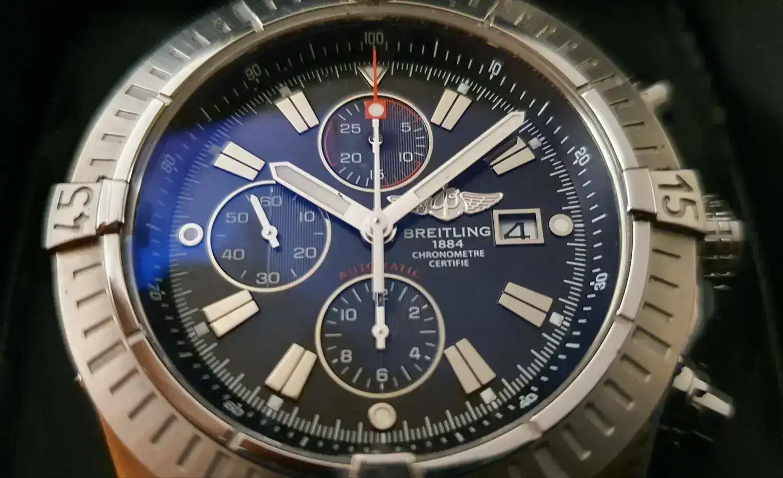 Fantástico Bretiling en estado como nuevo. La caja no tiene ninguna marca y el armis al ser pulido cuando lo usas 2 veces adquiere micropelillos. Es una pieza espectacular cuyo precio en internet supera los 3500 euros y en este estado, ampliamente los 4000.