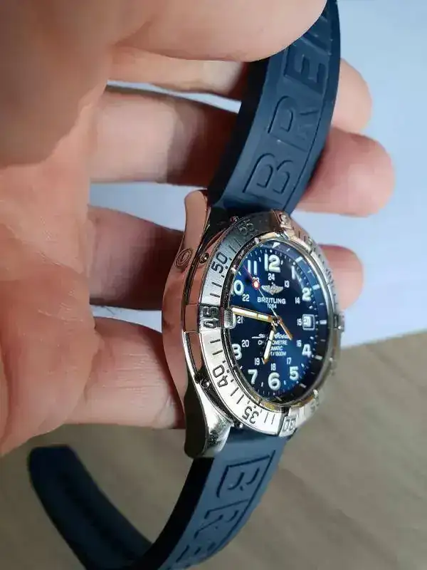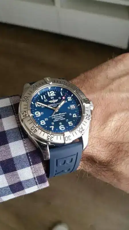 Es un Breitling Super Ocean 1.500m, precioso, el azul de las correas, junto con el del dial, le dan una estética muy DIVER, que os tengo que contar....
