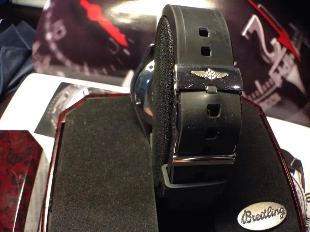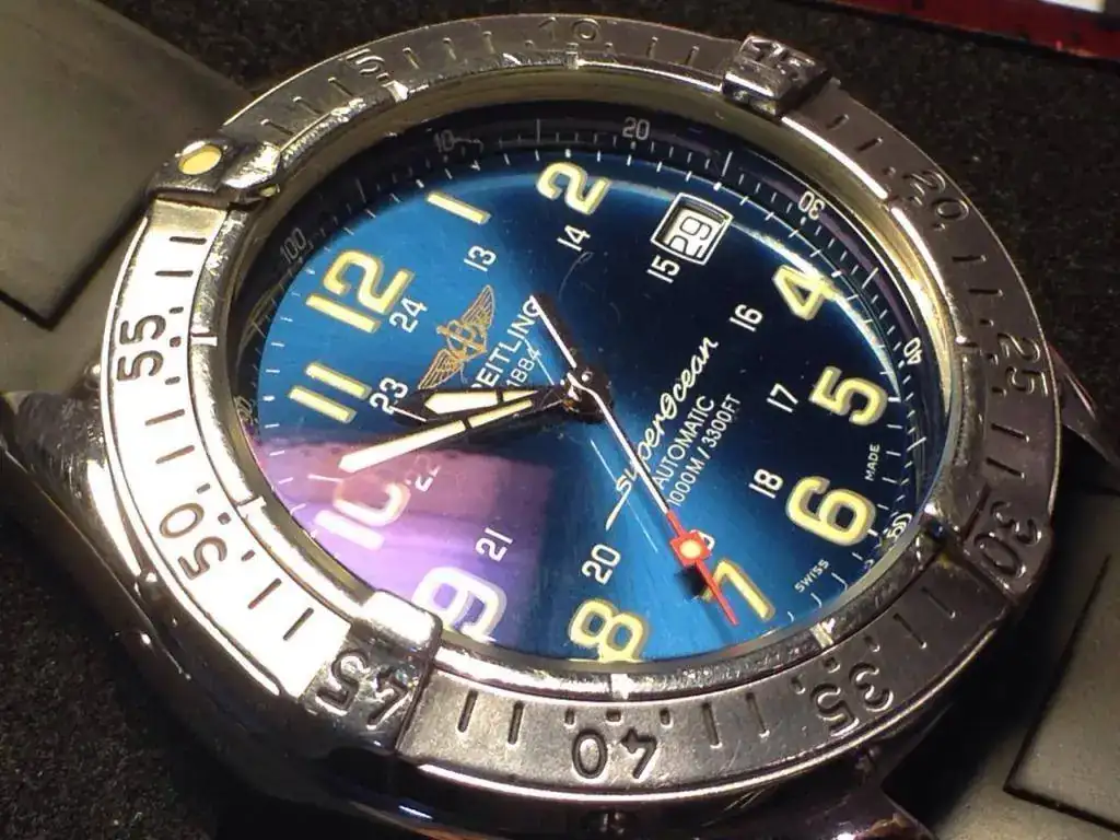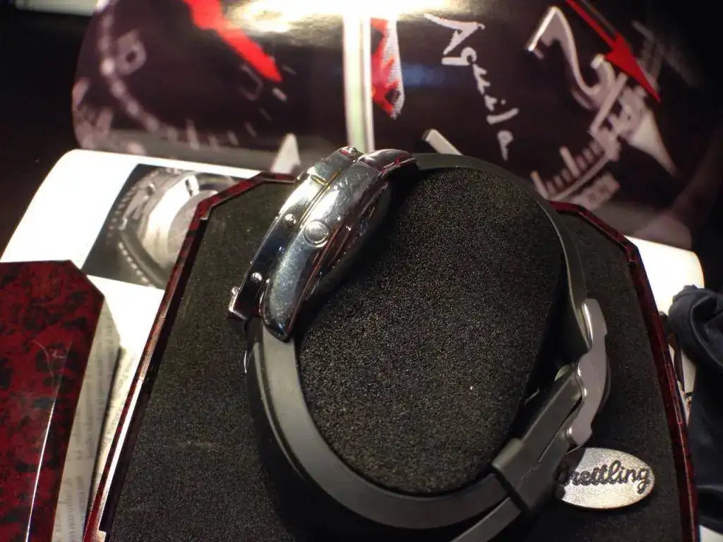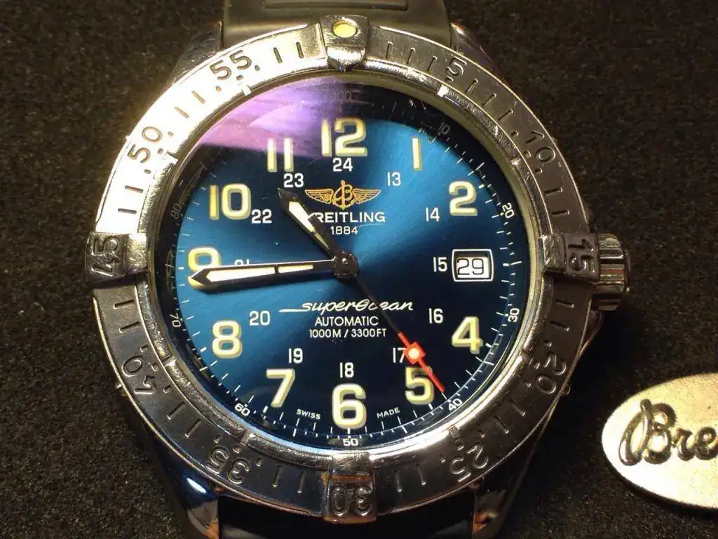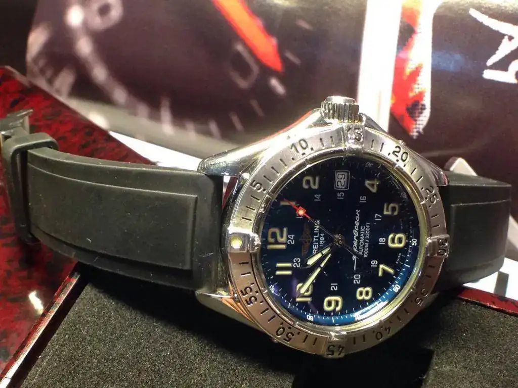 - Otro que le toca salir de la caja………..Saco este Breitling Superocean 1000 m. El reloj se encuentra en buen estado general, con algunas marcas de uso, lleva puesta una correa de caucho original con hebilla original con muy poco uso, en definitiva un bonito reloj y cómodo que para mí goza de una excelente relación calidad/precio. El reloj cuenta con su caja de baquelita, libretos y la garantía (caducada).