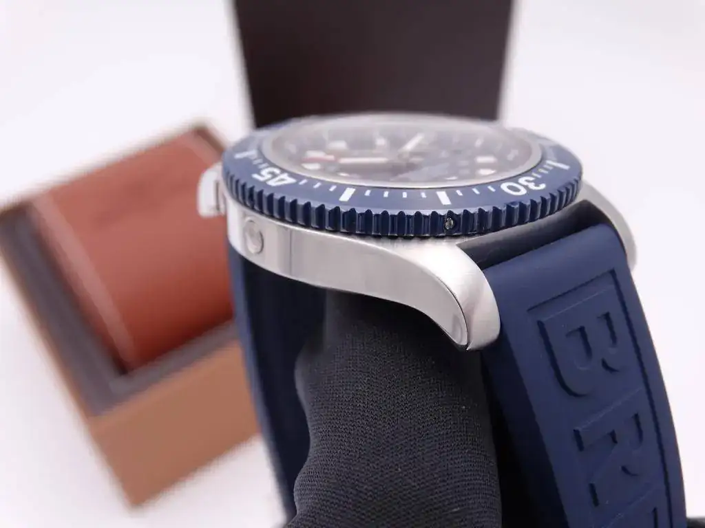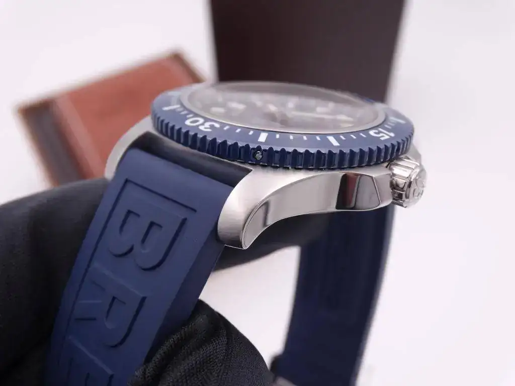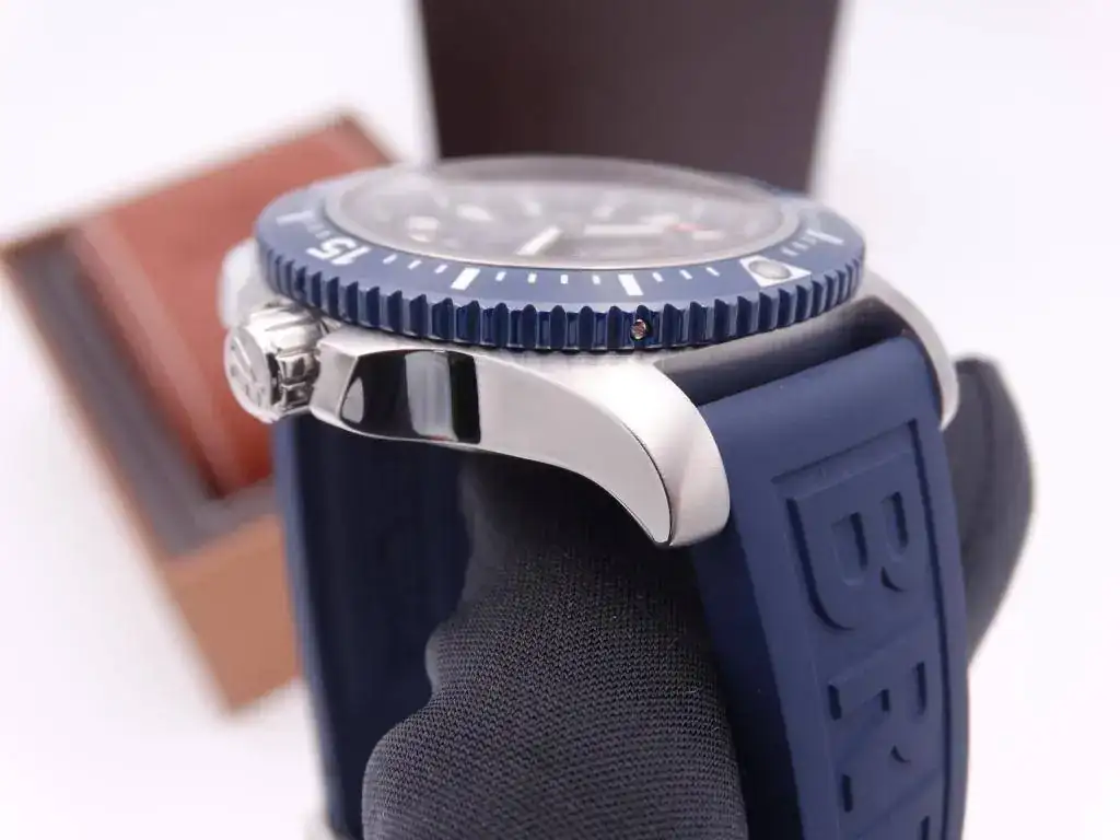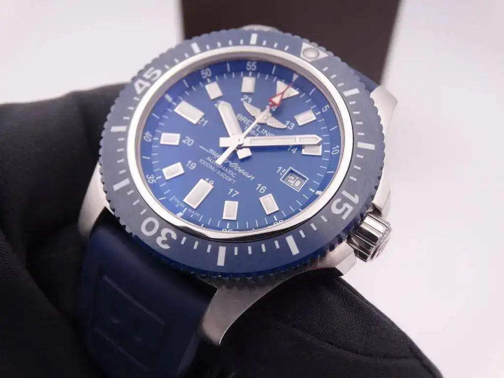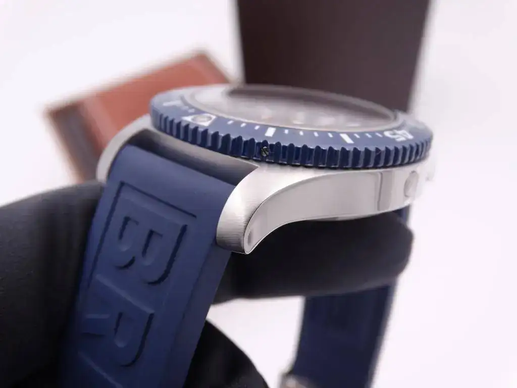 Una de las versiones mas destacadas del Superocean no pasa desapercibida gracias a su color azul y sobretodo al empleo de la cerámica para el bisel, confiriendo un conjunto increíblemente equilibrado y notable. Un reloj versátil, sobretodo gracias al conjunto del brazalete y el caucho, permitiéndole adaptarse a cualquier circunstancia.