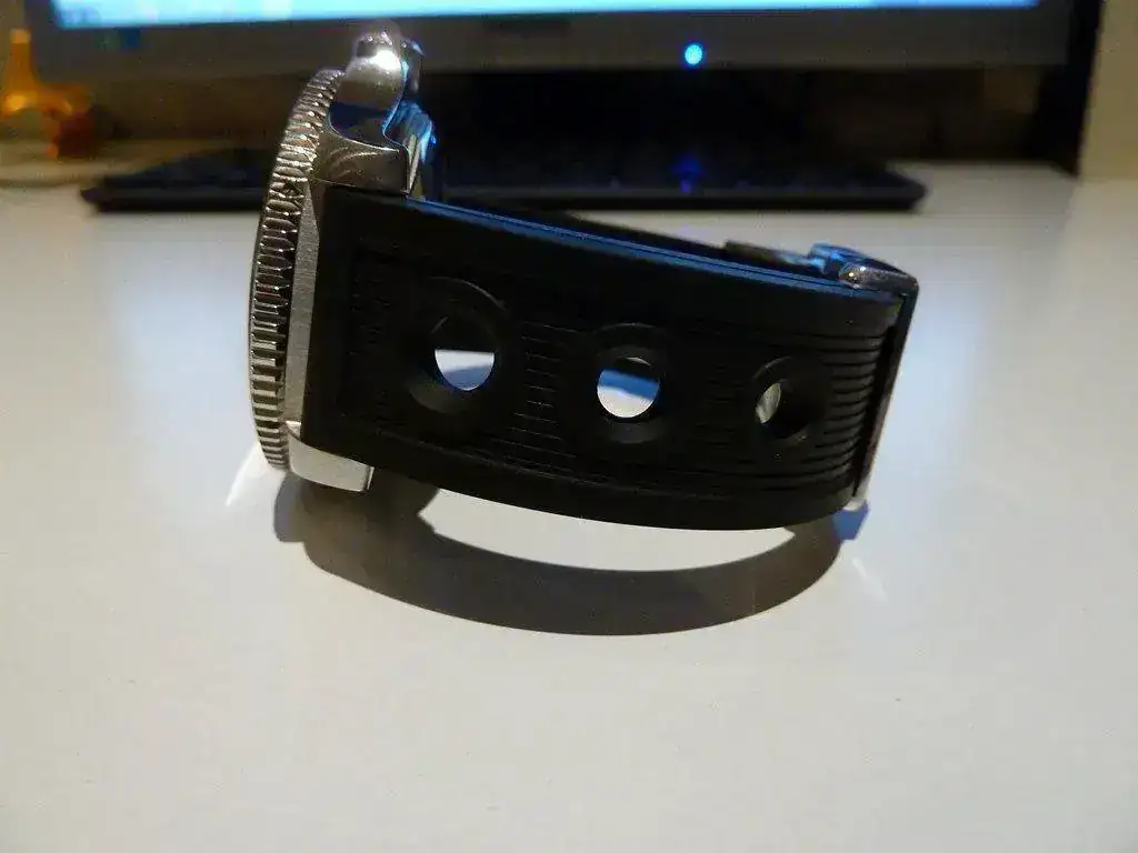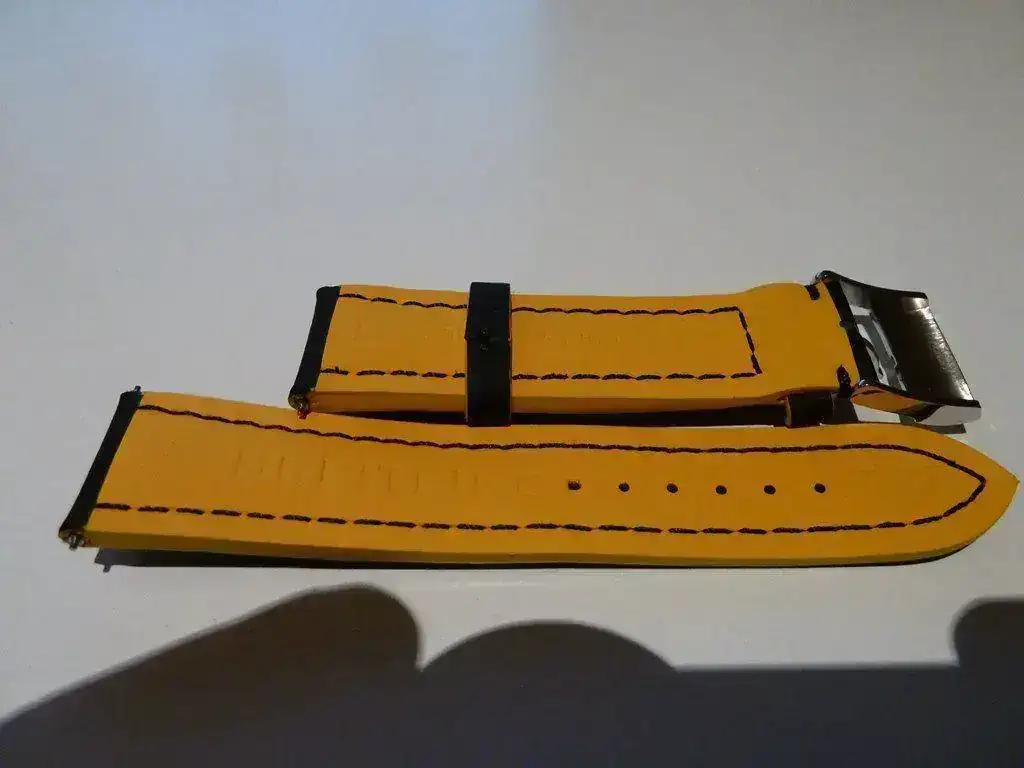 · Brazalete de cauco con cierre deployante mas una de neopreno negra y amarilla a juego con el segundero a mayores.